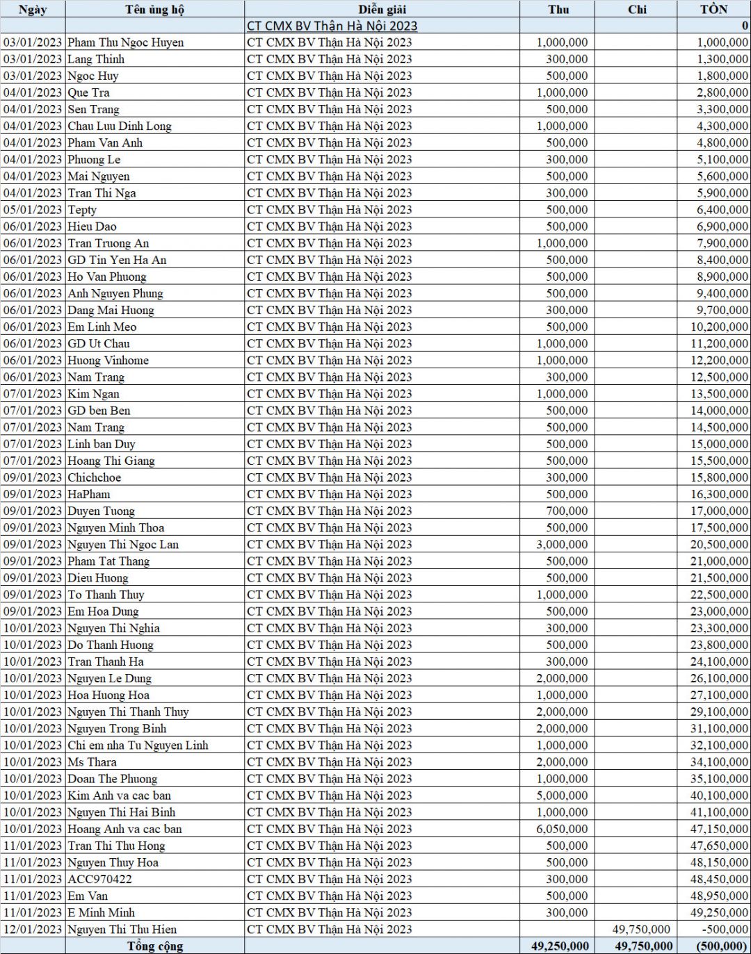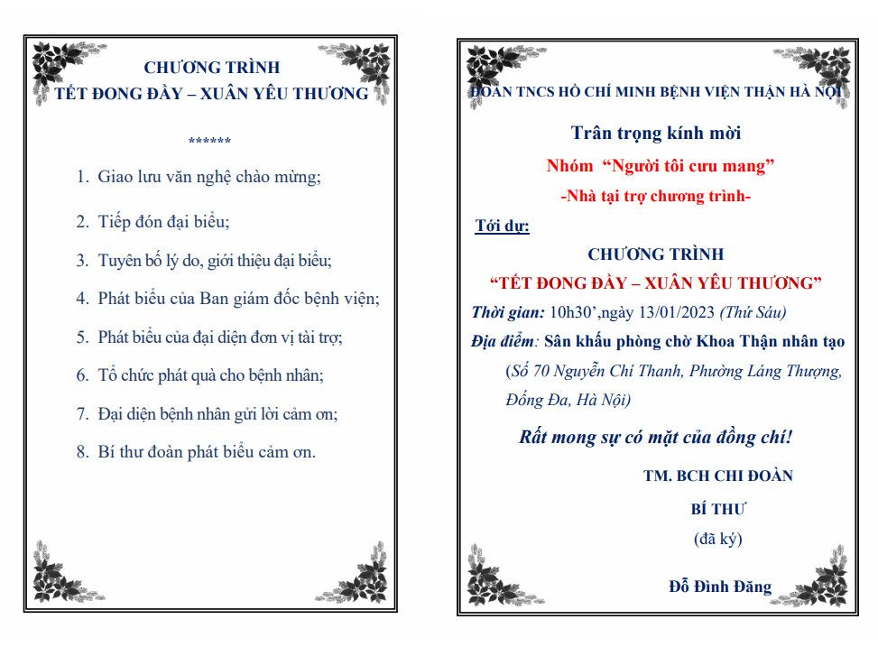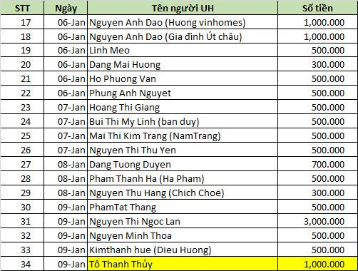 Tiền dư của Chương trình : 18.957. Ko 000 đ . Chúng tôi xin phép những người ủng hộ được chuyển cho các hoạt động hỗ trợ của bệnh nhân viện thận sau Tết