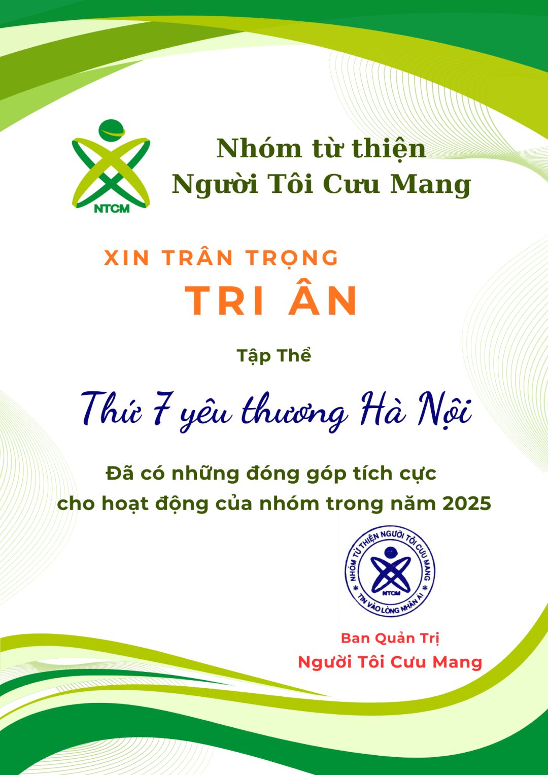 BQT xin ghi nhận và tri ân những đóng góp tích cực của tập thể Thứ 7 yêu thương Hà Nội trong năm vừa qua.