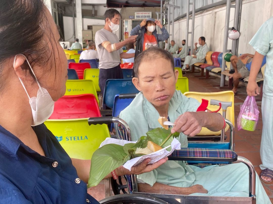 Hôm nay lịch khám và chạy thận cho BN có chút thay đổi, sớm hơn thường lệ nên số BN chạy thận nhận xôi có giảm đi chút. Và nhóm thực hiện đã mang số xôi còn dư tới tận Xóm chạy thận trao cho bệnh nhân luôn.