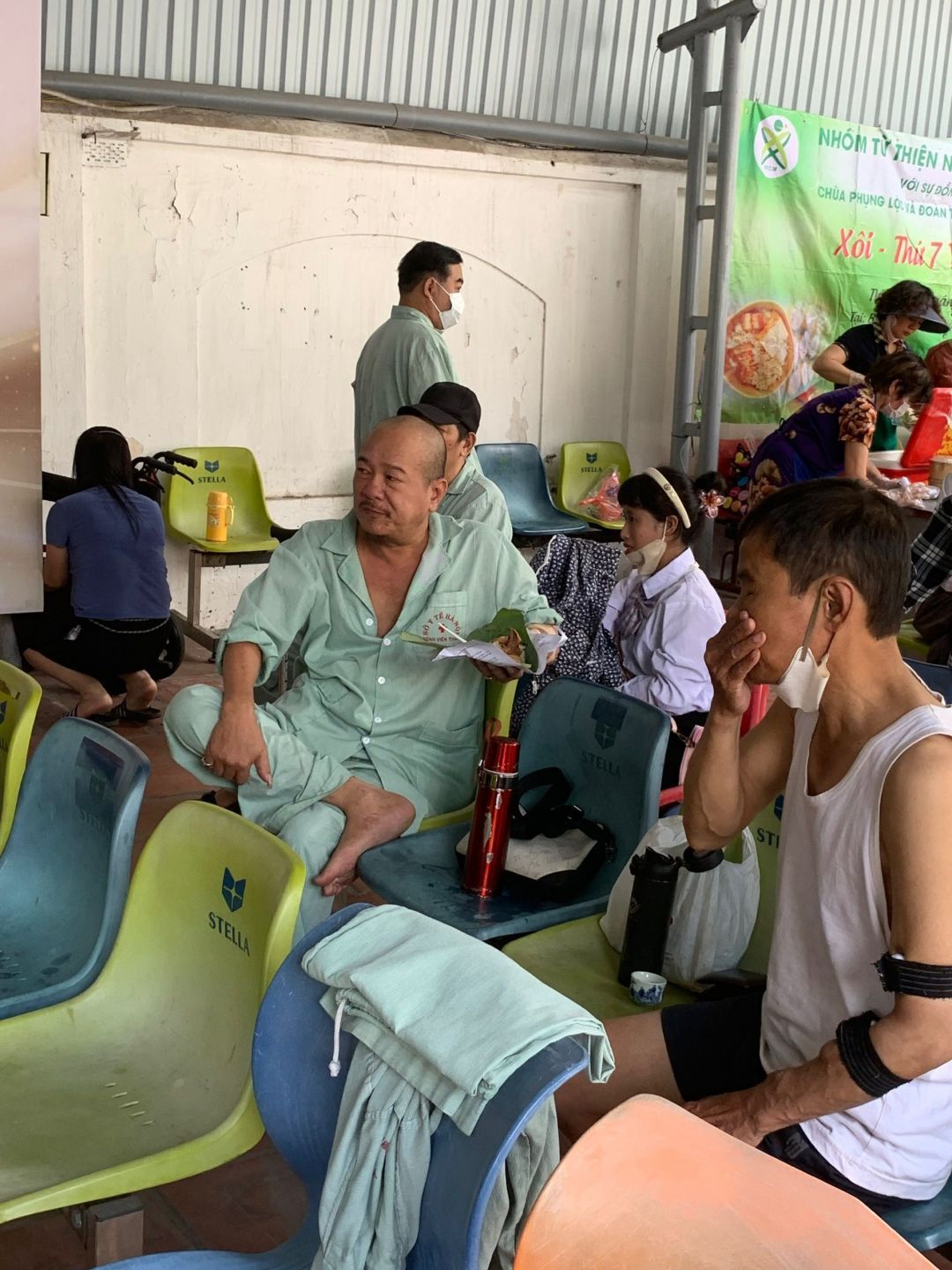 Hôm nay lịch khám và chạy thận cho BN có chút thay đổi, sớm hơn thường lệ nên số BN chạy thận nhận xôi có giảm đi chút. Và nhóm thực hiện đã mang số xôi còn dư tới tận Xóm chạy thận trao cho bệnh nhân luôn.