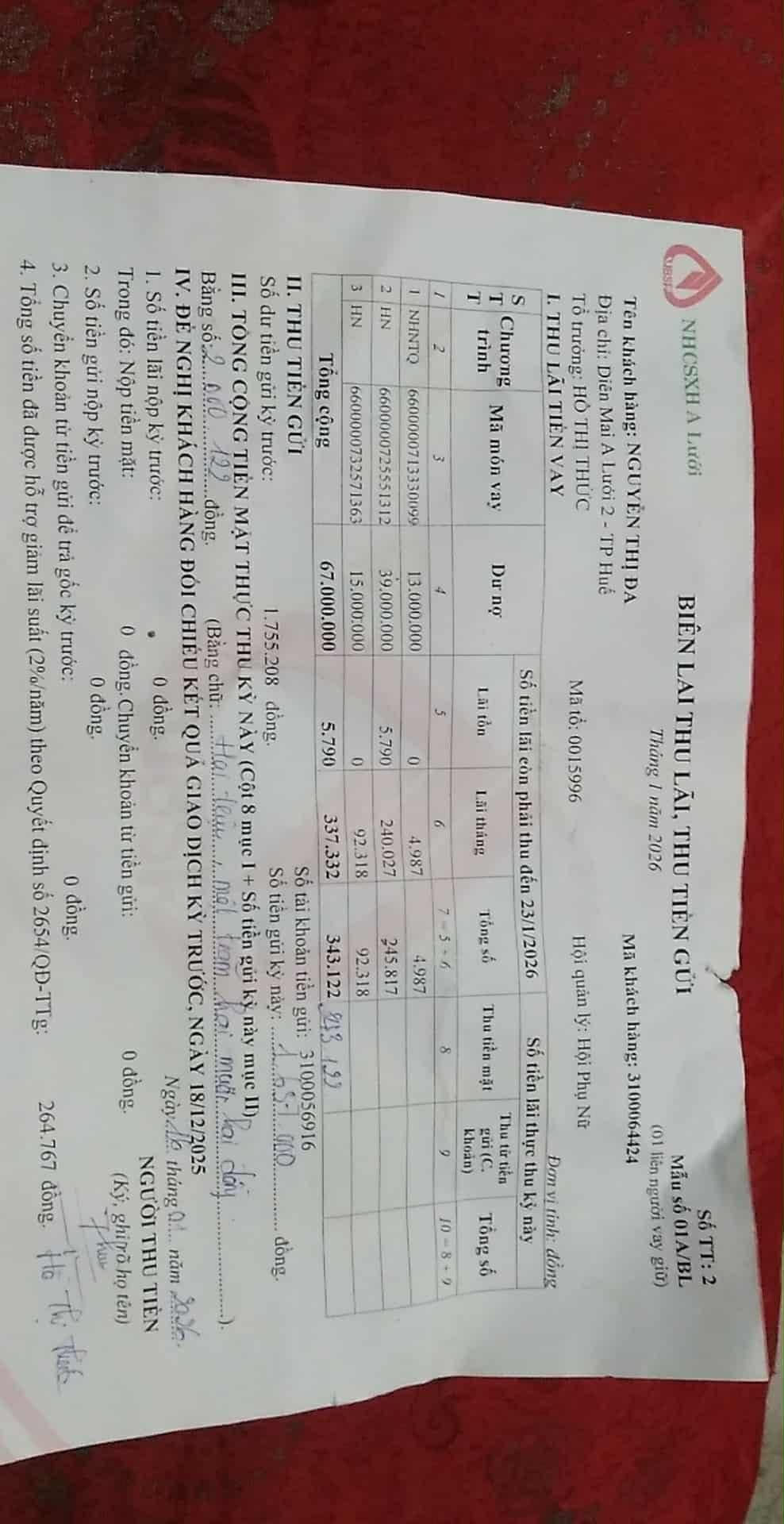 Số tiền vay nợ là 67 triệu đồng .