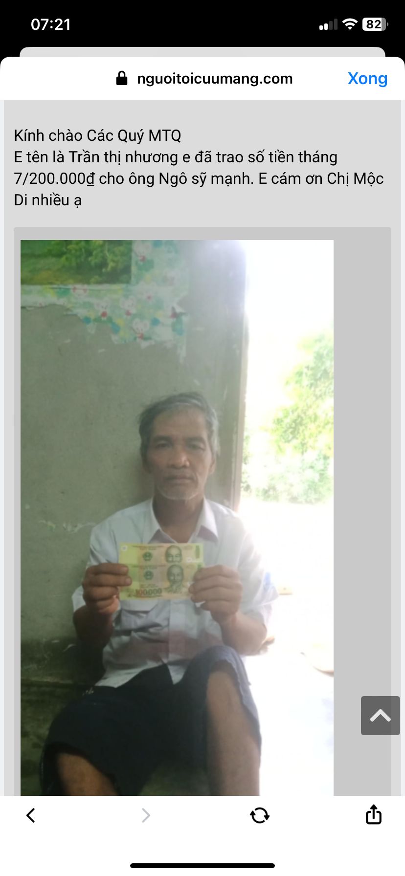 E tên là Trần thị nhương e đã trao số tiền tháng 8/200.000₫ cho ông Ngô sỹ mạnh. E cám ơn Chị Mộc Di nhiều ạ