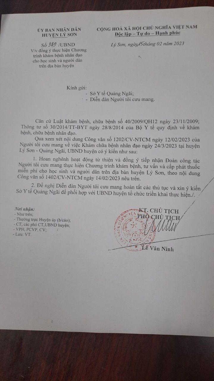 o Người dân thuộc địa bàn huyện với tiêu chí: người khuyết tật, người trên 65 tuổi, người đơn thân, người nghèo có hoàn cảnh khó khăn … (300 người): Khám tại Trung tâm Y tế huyện Lý Sơn