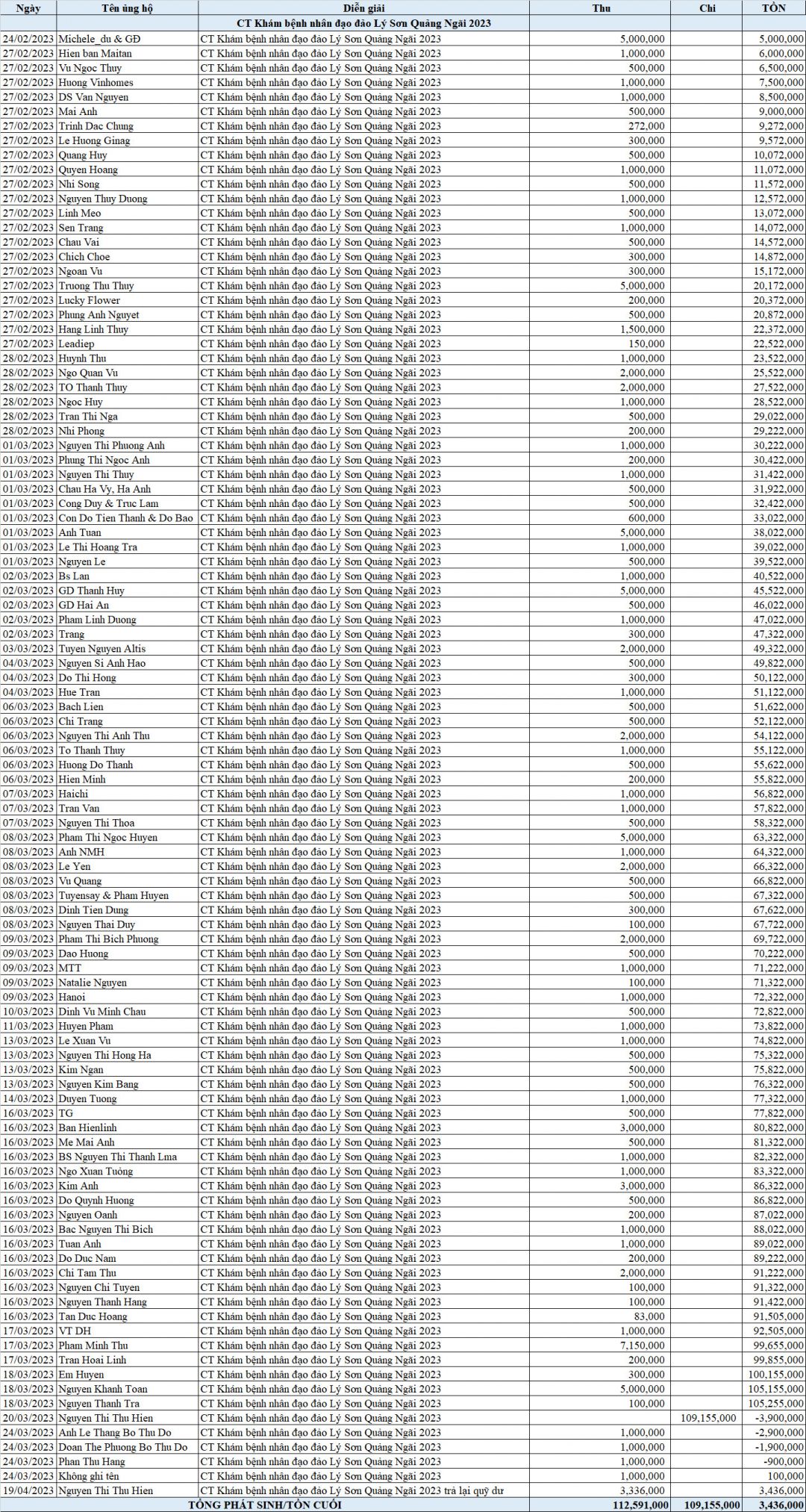 - Có 2 khoản ủng hộ chị Hiền Linh cập nhật thiếu.
