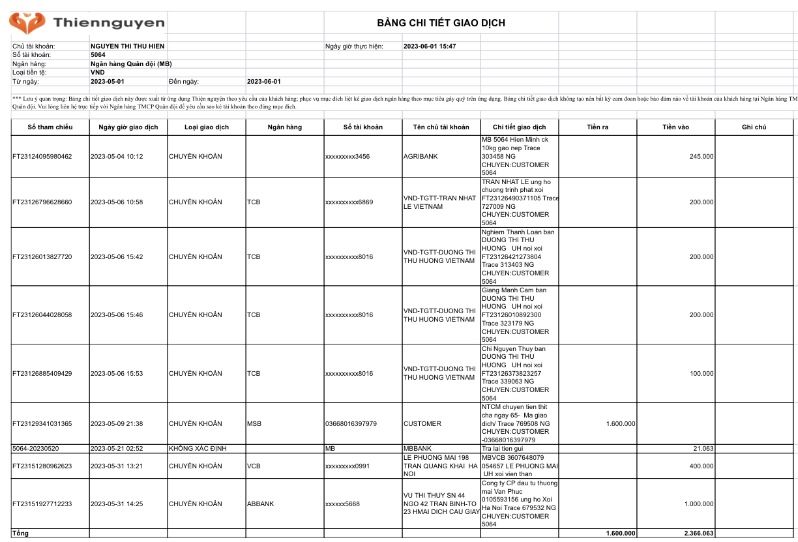 TK này là tài khoản mở , ACE có thể kiểm tra các khoản thu chi của nhóm khi tải áp thiện nguyện trong khoảng thời gian 3 tháng.
