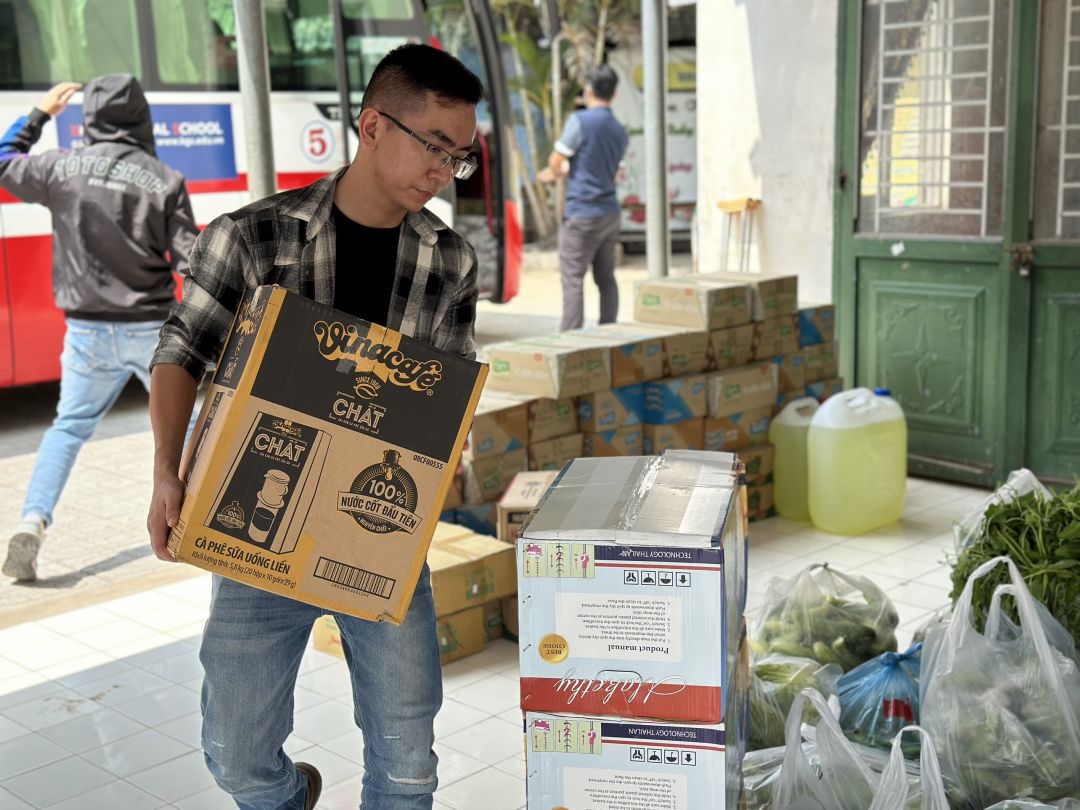 - 13h30: chụp hình tập thể, gửi tặng gạo, nhu yếu phẩm, sữa cho mái ấm
