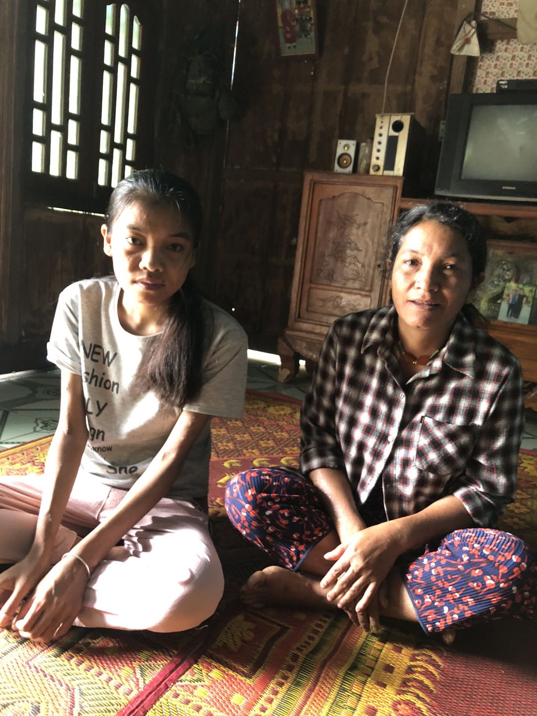 2. Mẹ: Pi Riu Thị Lan, đau ốm (bị liệt dây thần kinh số 7), 46 tuổi