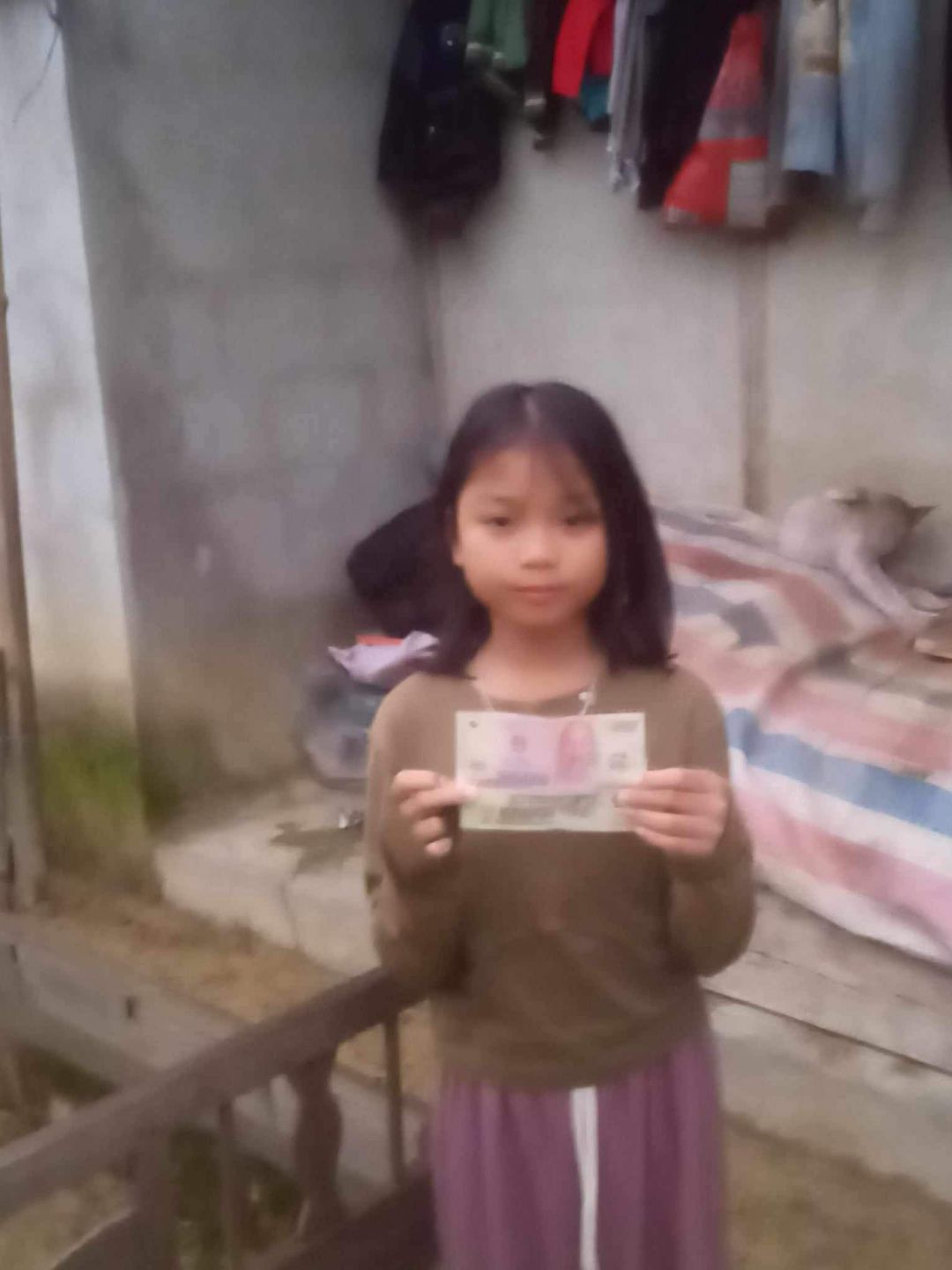 Em Wendy trao số tiềnCMTX t2 300.000 đ và lì xì 100.000đ cho chị em cháu Mai Khuyến ạ!