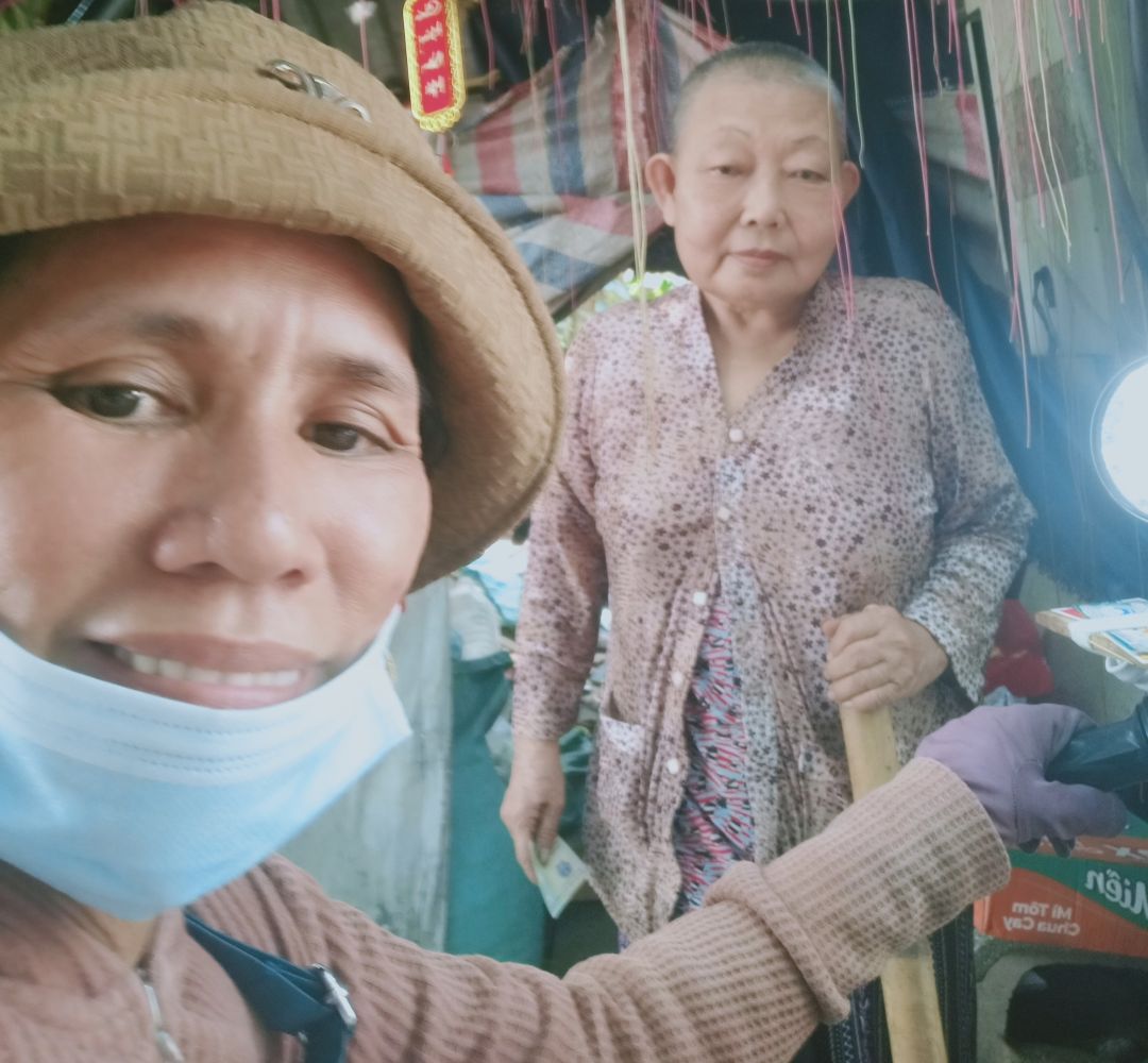 Đầu tháng 7 Mai Trâm đi bán có ghé thăm Bà và bao hiện tại chưa có người đăng ký hổ trợ Bà. Bà nói không sao lý do thời gian này người Em thứ 5 của Bà thường xuyên đưa bà đi khám bệnh rồi đưa về nhà ở tiện ở lại chơi với con cháu khi nào muốn về thì
