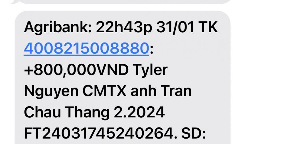 Tyler Nguyen đã chuyển CMTX Tháng 3.2024 tới Linh Kha.