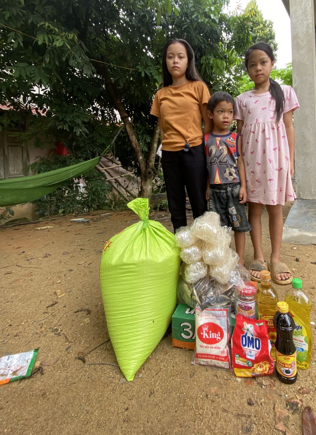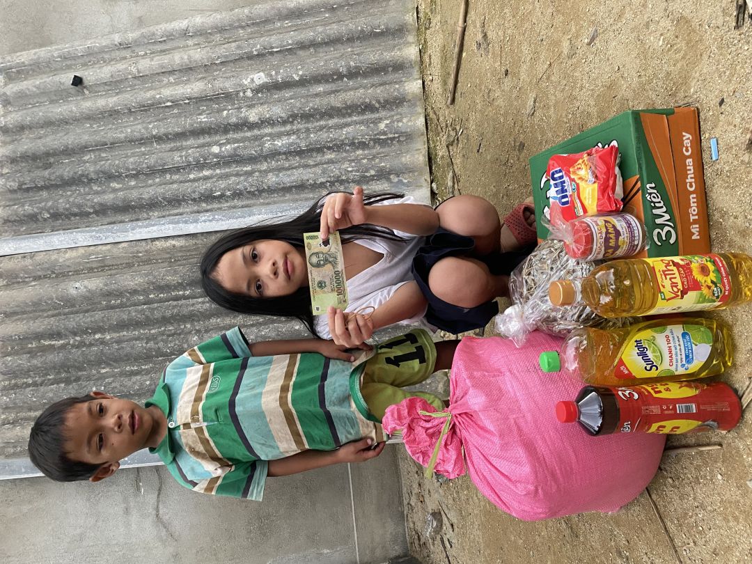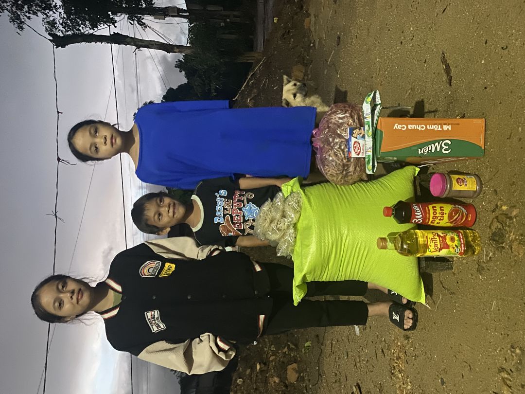 Em đã trao cho các cháu nhu yếu phẩm tháng 8/2024. Bố mẹ đi làm ăn xa các con ở nhà tự chăm sóc nhau. Biết ơn cô chú quý mạnh thường quân đã cưu mang, chúc cho gia đình cô chú luôn bình an và may mắn ạ.