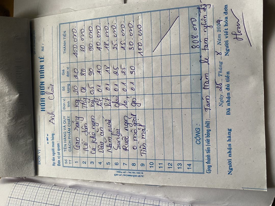 Em đã mua nhu yếu phẩm cho các con của anh Châu, tháng 4 năm 2024 ạ