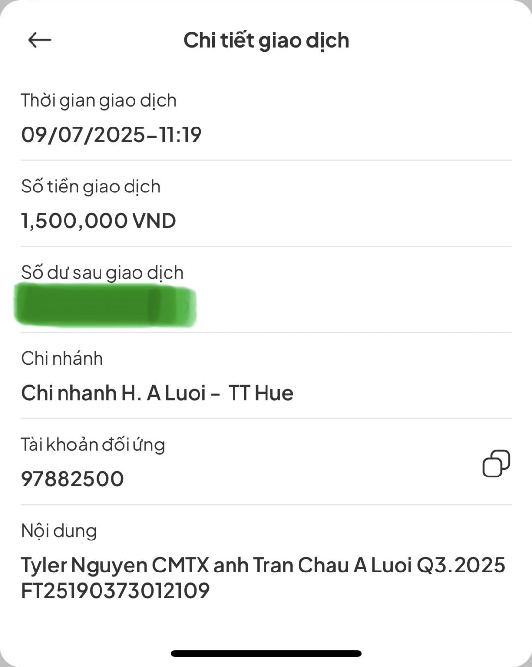 Anh Tyler Nguyen tiếp tục giúp đỡ anh Châu. Số tiền CMTX Q3/2025 đã được chuyển khoản.