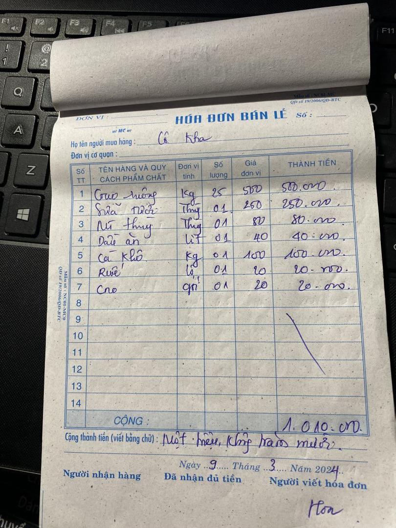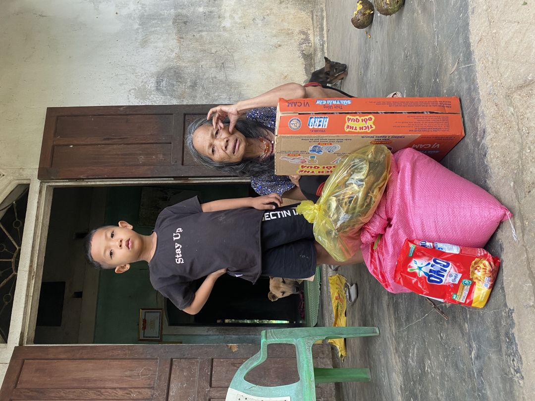 Em chào ngôi nhà NTCM hôm nay em đã mua nhu yếu phẩm tháng 7 cho gia đình bà Hoa và các con cháu mô côi, với số tiền là 500.000đ bao gồm
