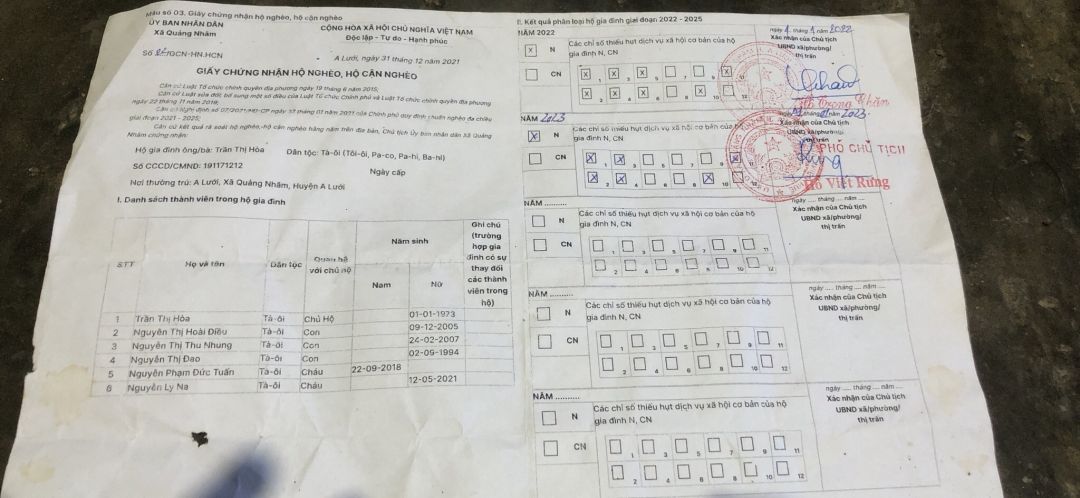 Gia đình chị Trần Thị Hoa 50 tuổi goá phụ, ở Thôn A lưới Xã Quảng Nhâm huyện A lưới Tỉnh thừa thiên Huế