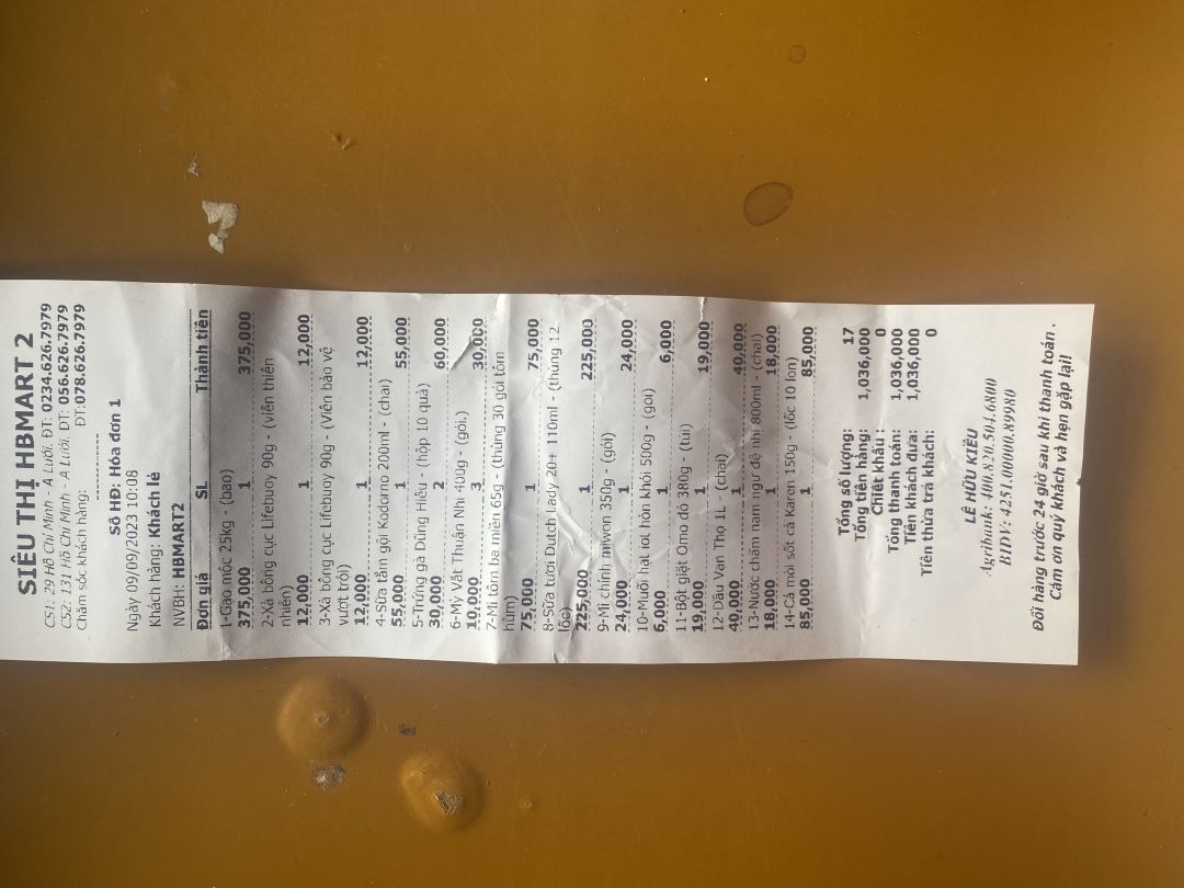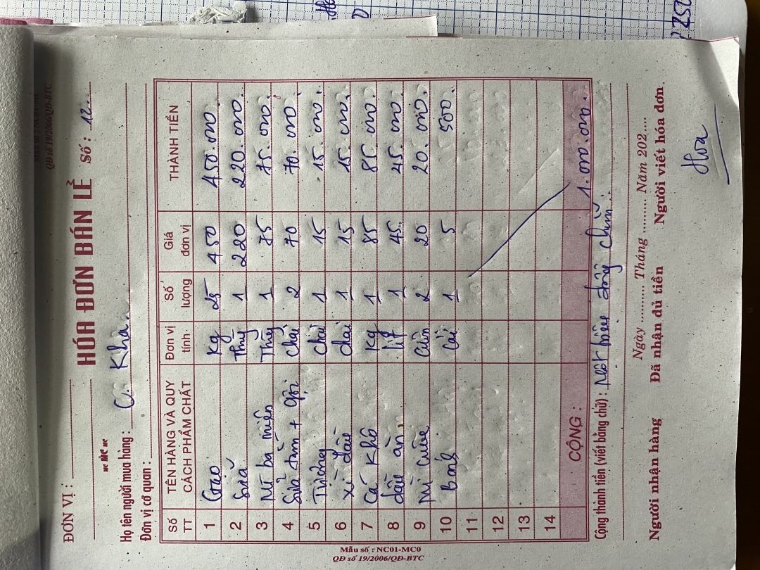 Hôm nay em trao nhu yếu phẩm tháng 10/2023 là 1 triệu đồng trong đó em mua nhu yếu phẩm là 603.000đ tiền mặt là 400.000đ tổng số tiền làm tròn là 1.000.000đ