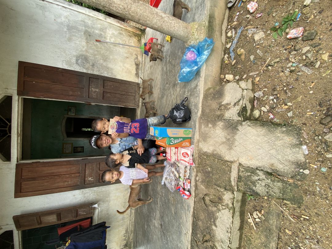 Em Thay mặt quý MTQ em đại diện trao quà tháng 8 cho chị Hoa và các cháu biết ơn ngôi nhà NTCM đã giúp đỡ hỗ trợ trong mấy tháng qua