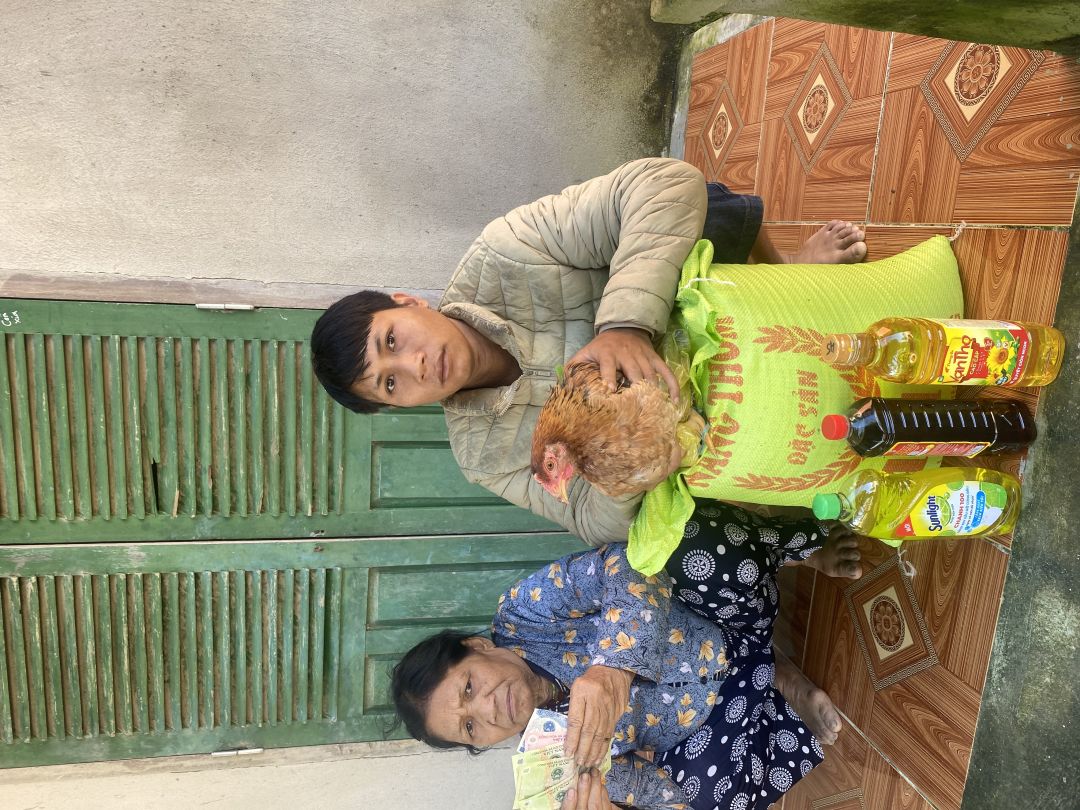 Em đại diện cho quý mtq đến trao số tiền và bao gạo của 2 tháng 8,9. Gia đình rất biết ơn ngôi nhà NTCM