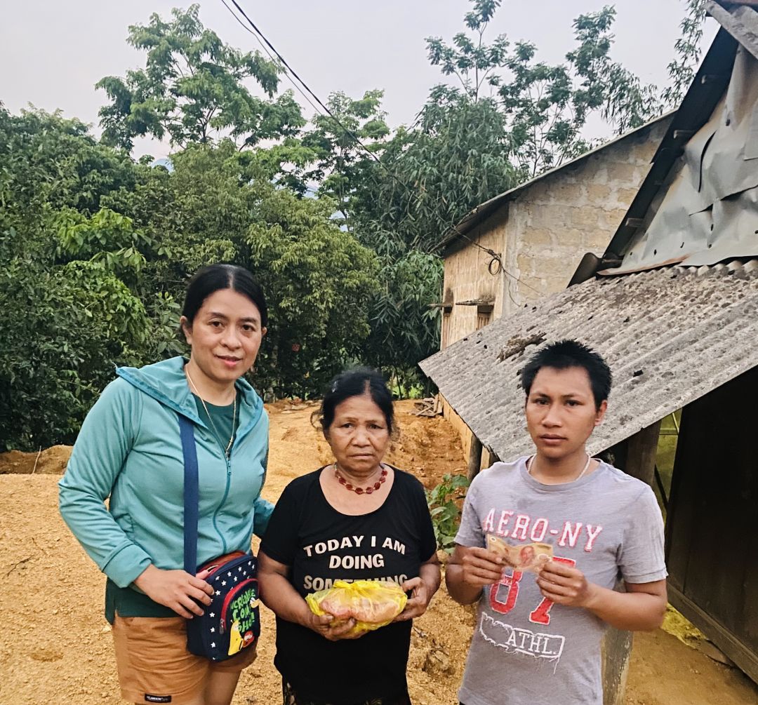 Em thay mặt quý ân nhân đã cưu mang giúp đỡ gia đình bà Kan Khoan 70 tuổi nuôi các con bị câm điếc và tâm thần trao nhu yếu phẩm tháng 5/2024