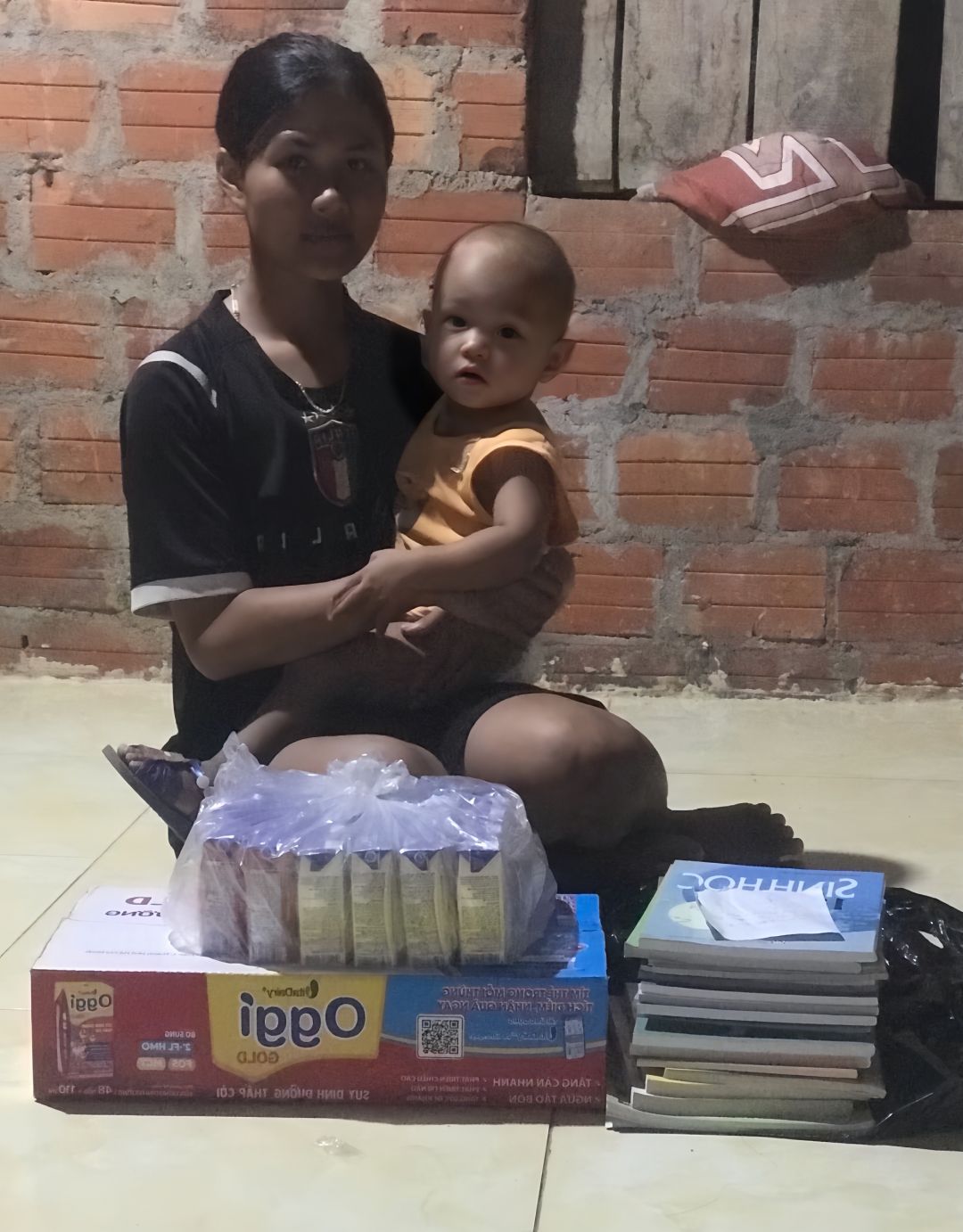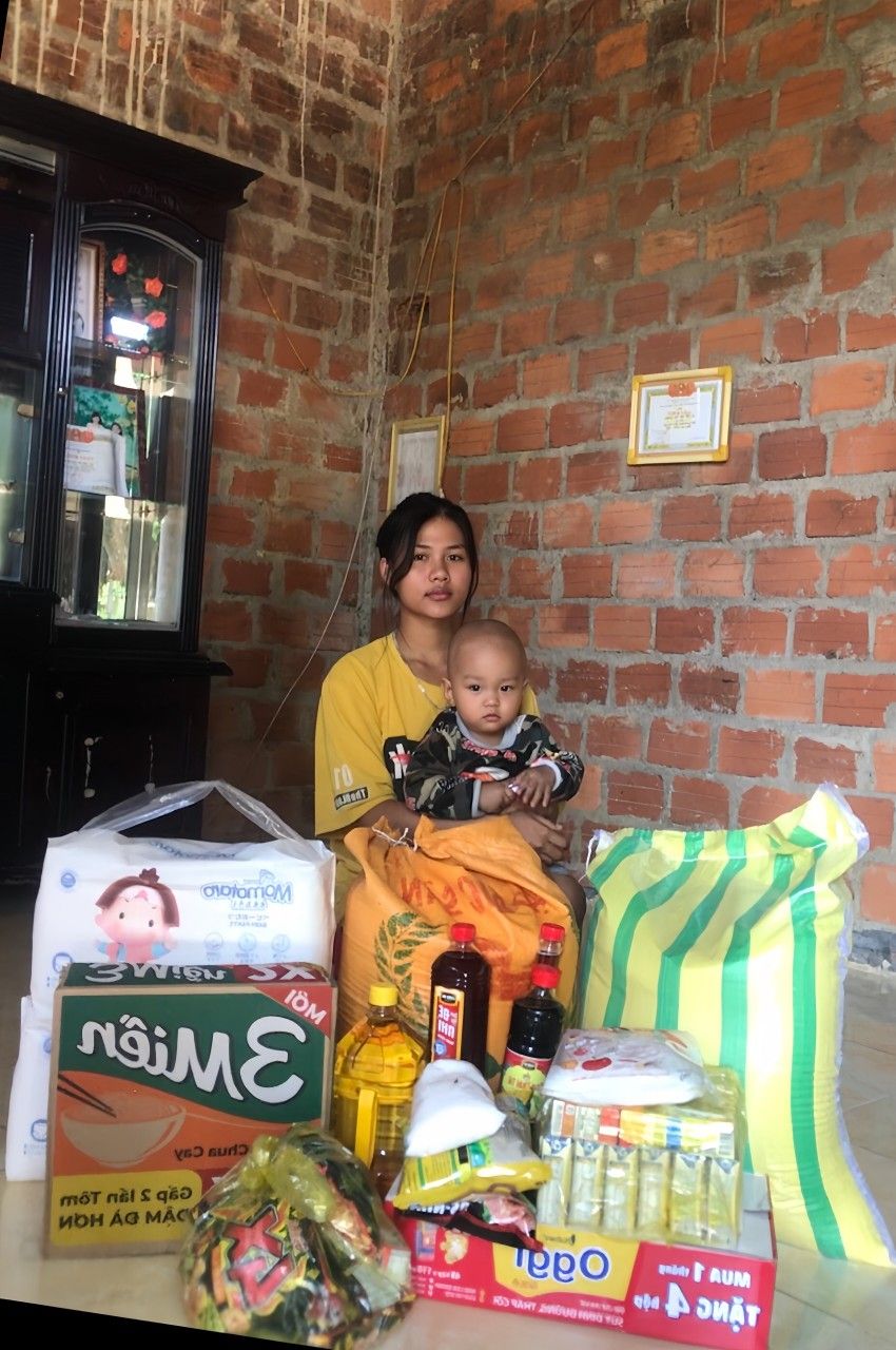 Trao nhu yếu phẩm tháng 09 cho 2 chị em Kim Luyến . Xin cảm ơm tình cảm của quí mạnh thường quân NTCM ạ !