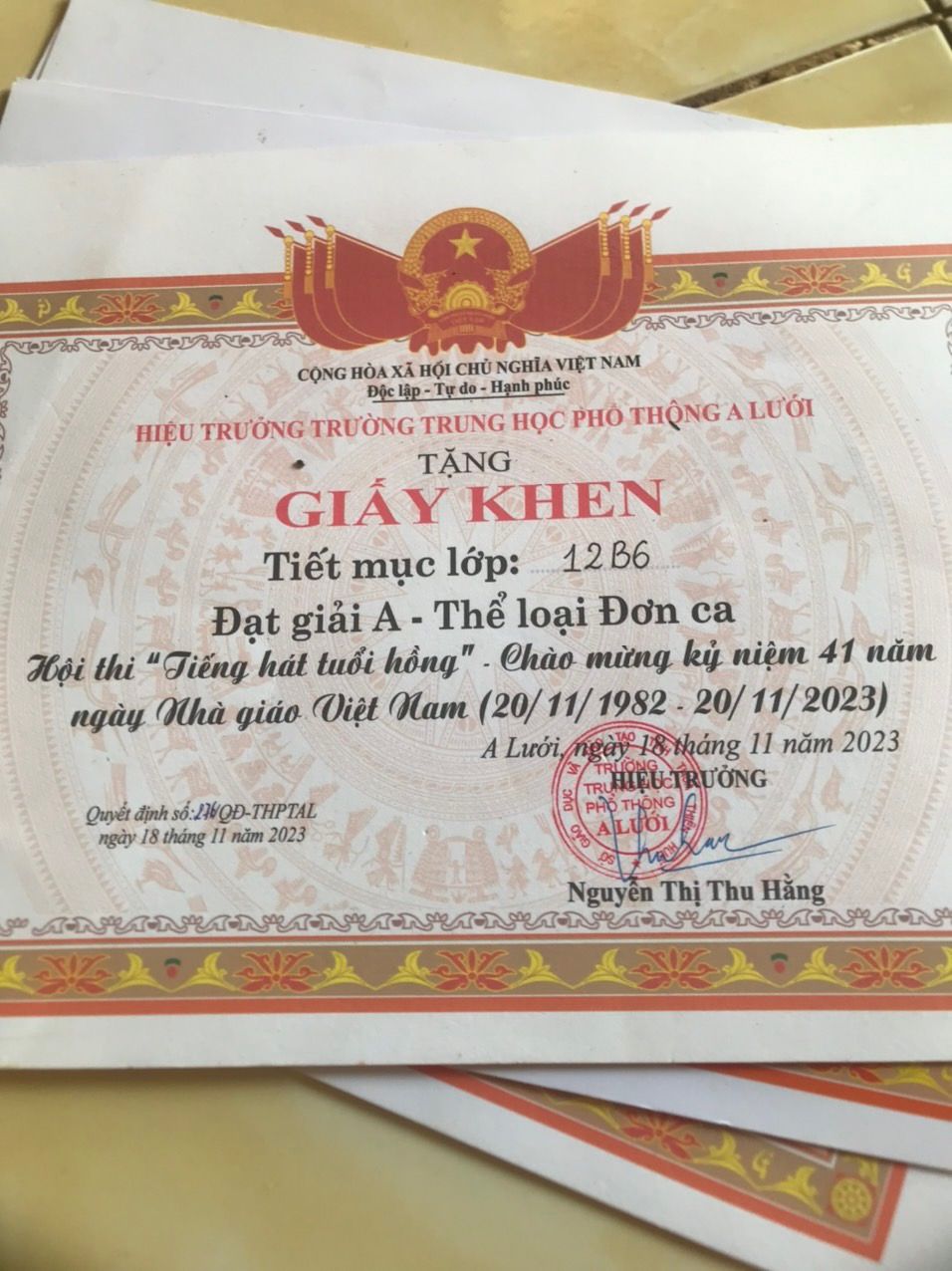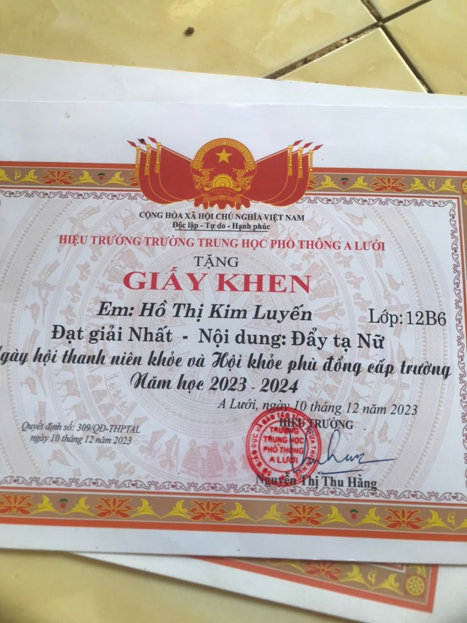 Báo cáo quí mạnh thường quân, 1 năm qua được sự yêu thương, quan tâm của các cô các chú  trong gia đình NTCM ,em Luyến đã cố gắng rất nhiều  và giành được giấy khen trong  các hoạt động văn - thể Mỹ và  học tập , em  xin báo cáo  một số thành tích  mà cháu đạt được trong một năm học cho cả nhà mình cùng vui và động viên tinh thần cho  cháu ạ  , là một GVCN  em rất tự hào về cháu, và hiện tại cháu đang vừa ôn thi TNTHPT  vừa đang tập bóng đá để 10.6 đi thi  HKPĐ toàn quốc .  cảm ơn quí mạnh thường quân rất nhiều , mong quí mạnh thường quân tiếp túc yêu thương , giúp đỡ để em tiếp tục được học tập và cháu cùng đam mê với bóng đá ạ
