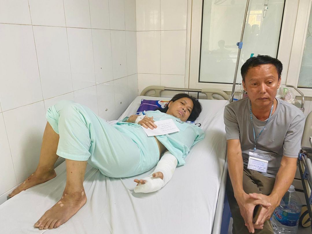 Hiện chị Minh bị gảy tay, rạn xương quai hàm đang nằm ở bệnh viện Việt Đức- Hà nội