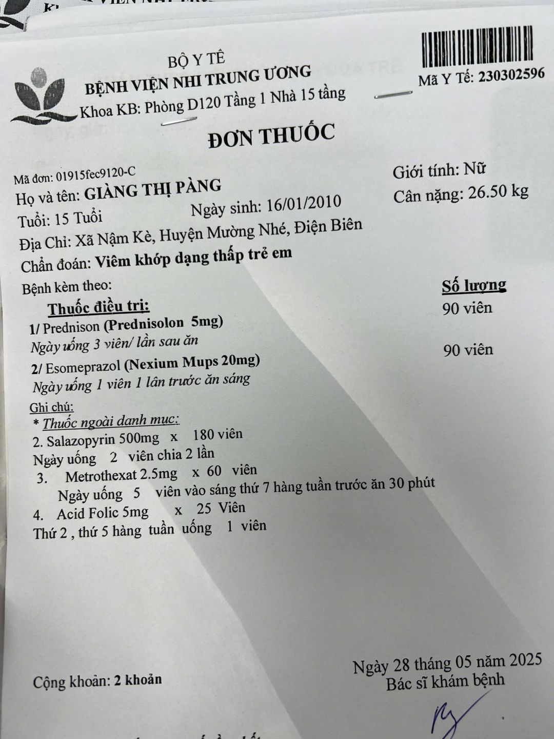 Tuần trước nhận được điện của Thầy Kiên là cháu không còn thuốc uống, tức tốc mai tan liên hệ với BS Súa (TT YT huyện Mường Nhé) dưới sự hướng dẫn của BS Băng - hai bác phối hợp để kê đơn cho con , con không phải lên Hà Nội khám nữa . Tin vui là con vẫn khỏe mạnh - đi học đều