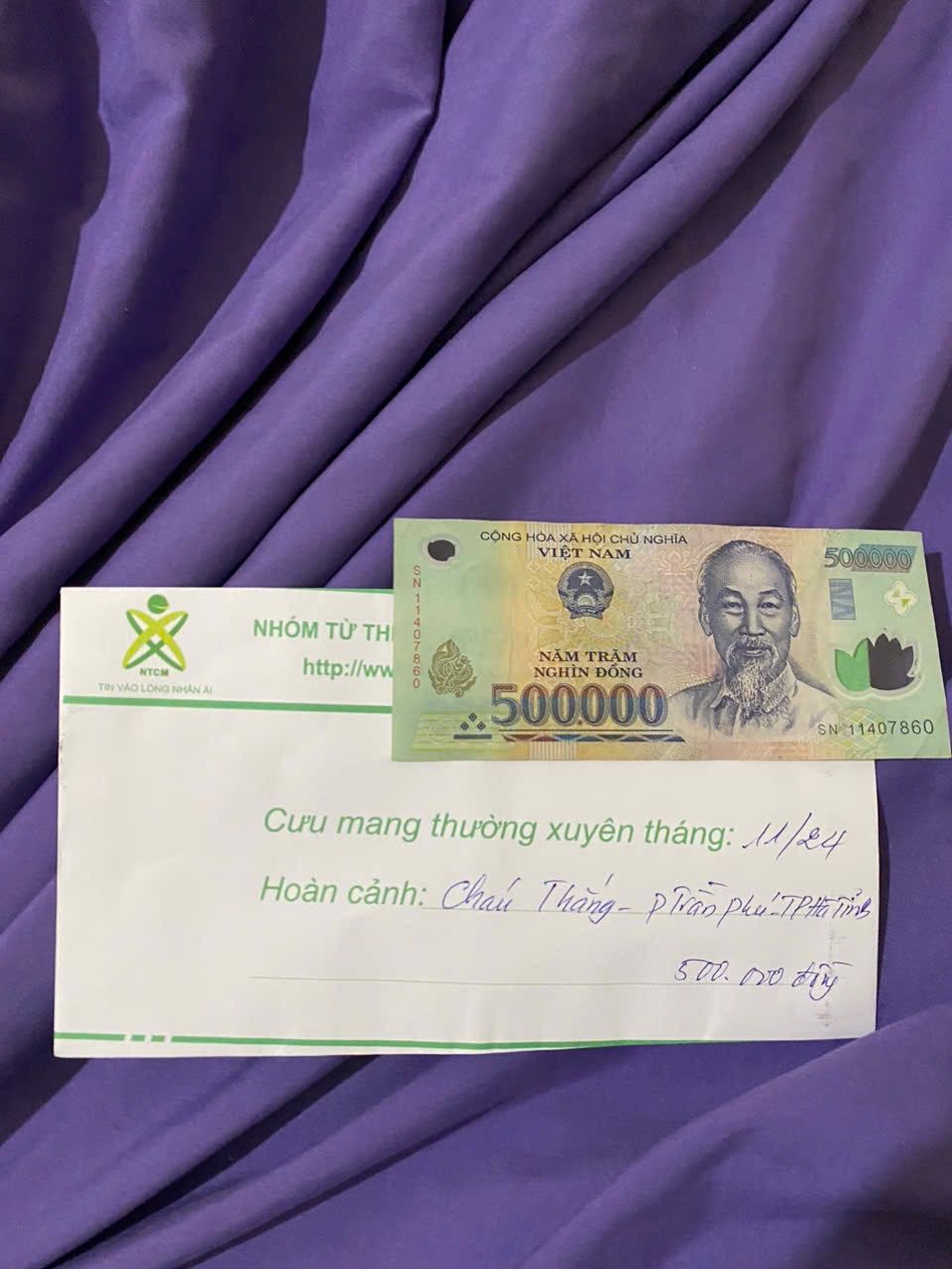 Trước mắt chúng ta xuất quỹ NTCM để CMTX cháu Thắng 500,000₫/tháng từ tháng 11-12/2024 các bạn nhé.
