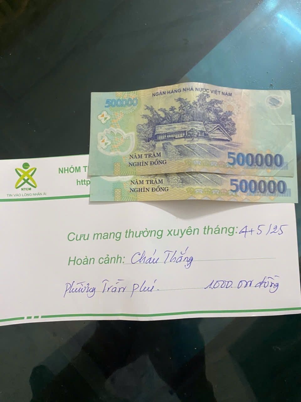 @trangvitgioi : Em xuất quỹ NTCM 1,500,000₫ để CMTX cháu Thắng trong 3 tháng kể từ tháng 4/2025.