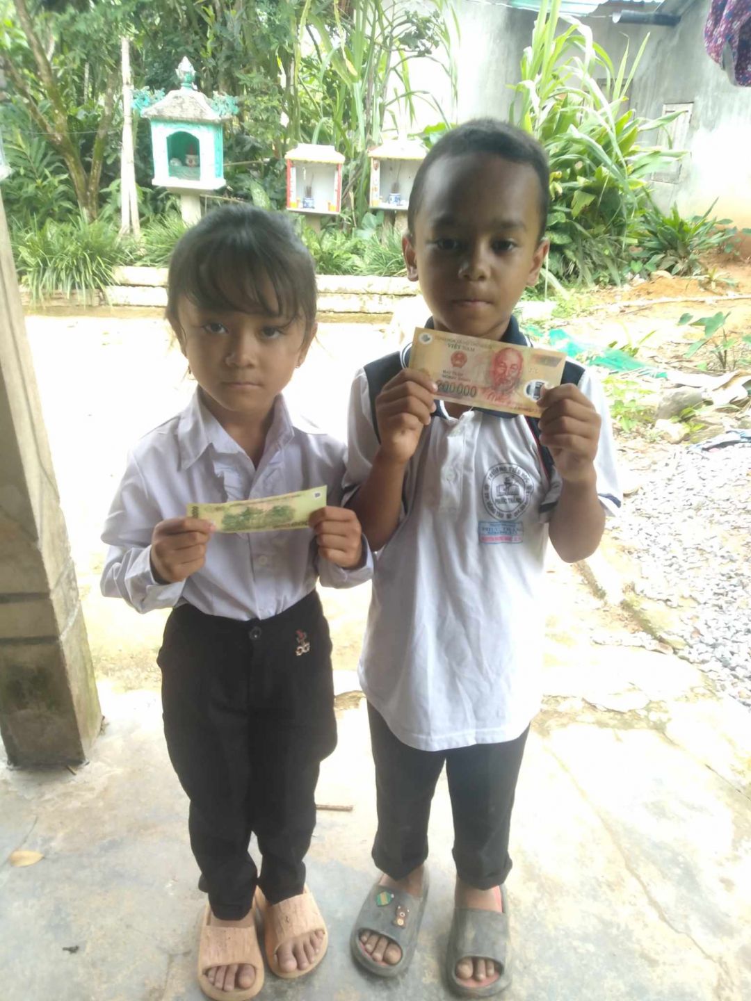 Hôm nay em vừa đi trao số tiền 600k CMTX tháng 6_7 cho 2 cháu Tông _ Tuyết của MiChele_Du và gđ chị chị Trang về thì nhận được thêm 600 k ( tháng 6,7,8) của chị Mộc Di gửi cho  2 cháu. Em xin thay mặt gđ và 2 cháu Cảm ơn tc của quí anh chị và gđ NTCM rất nhiều . Trân quí lắm ạ 🥰🥰🥰