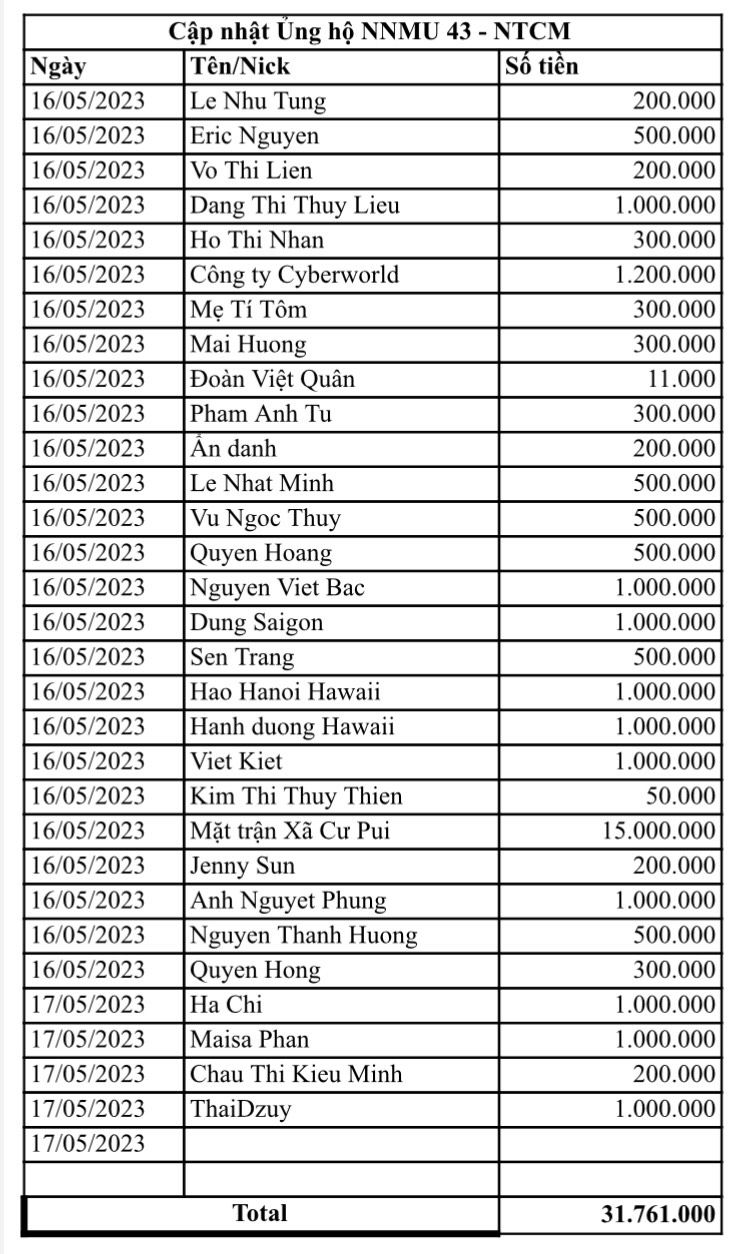 Đã chuyển tiền vào Quỹ ạ. Cảm ơn các anh chị và các bạn nhiều ạ !!