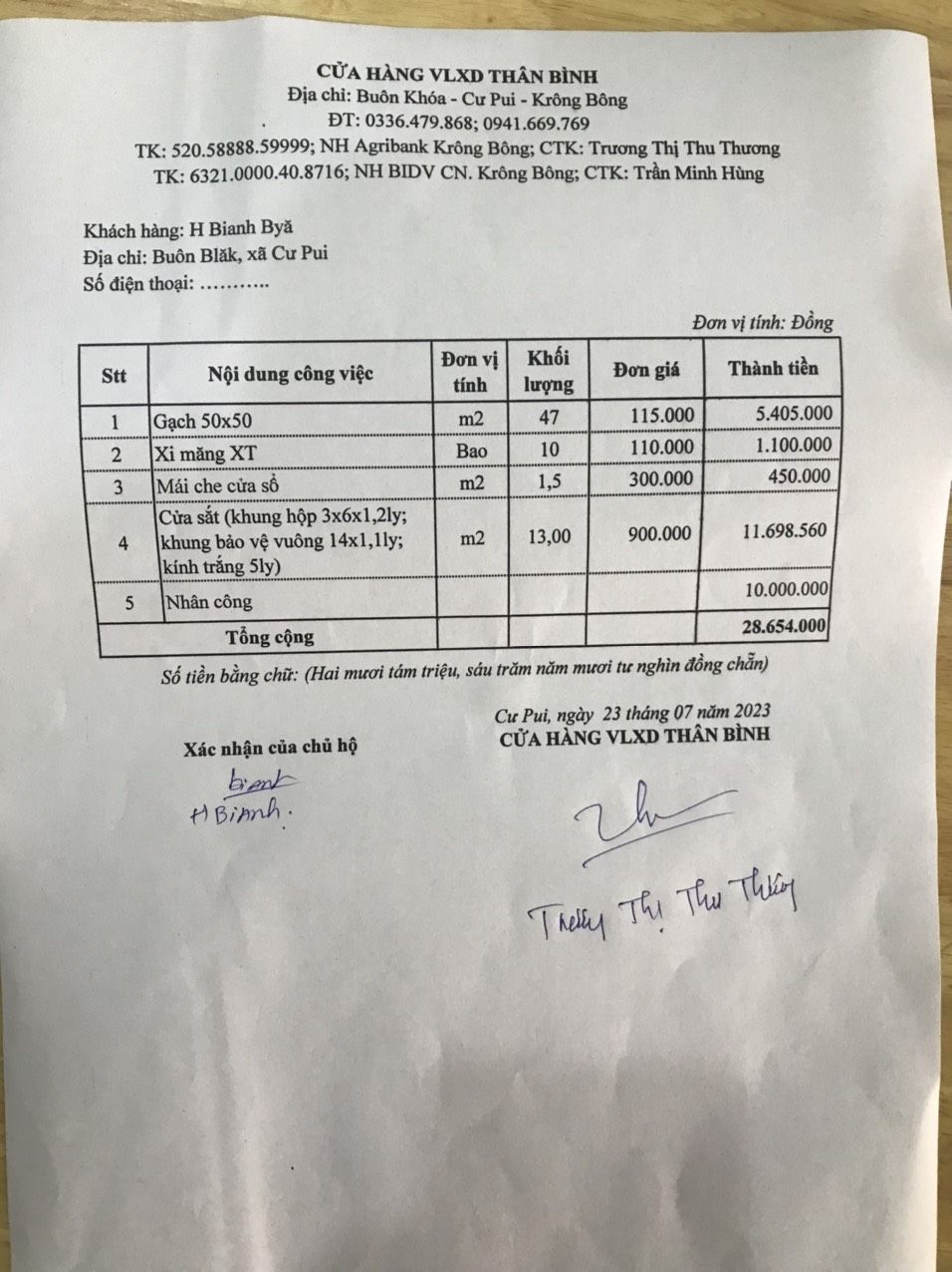 Vào ngày 16/6/2023 mình đã nhận số tiền 40 triệu đồng của NTCM chuyển lần 2 cho NNMU 43 tại buôn Blăk, Cư Pui. Và mình đã chuyển đủ số tiền trên cho chủ tịch UBMT xã để trao cho gia đình chị H Bianh trả thêm tiền vật liệu.