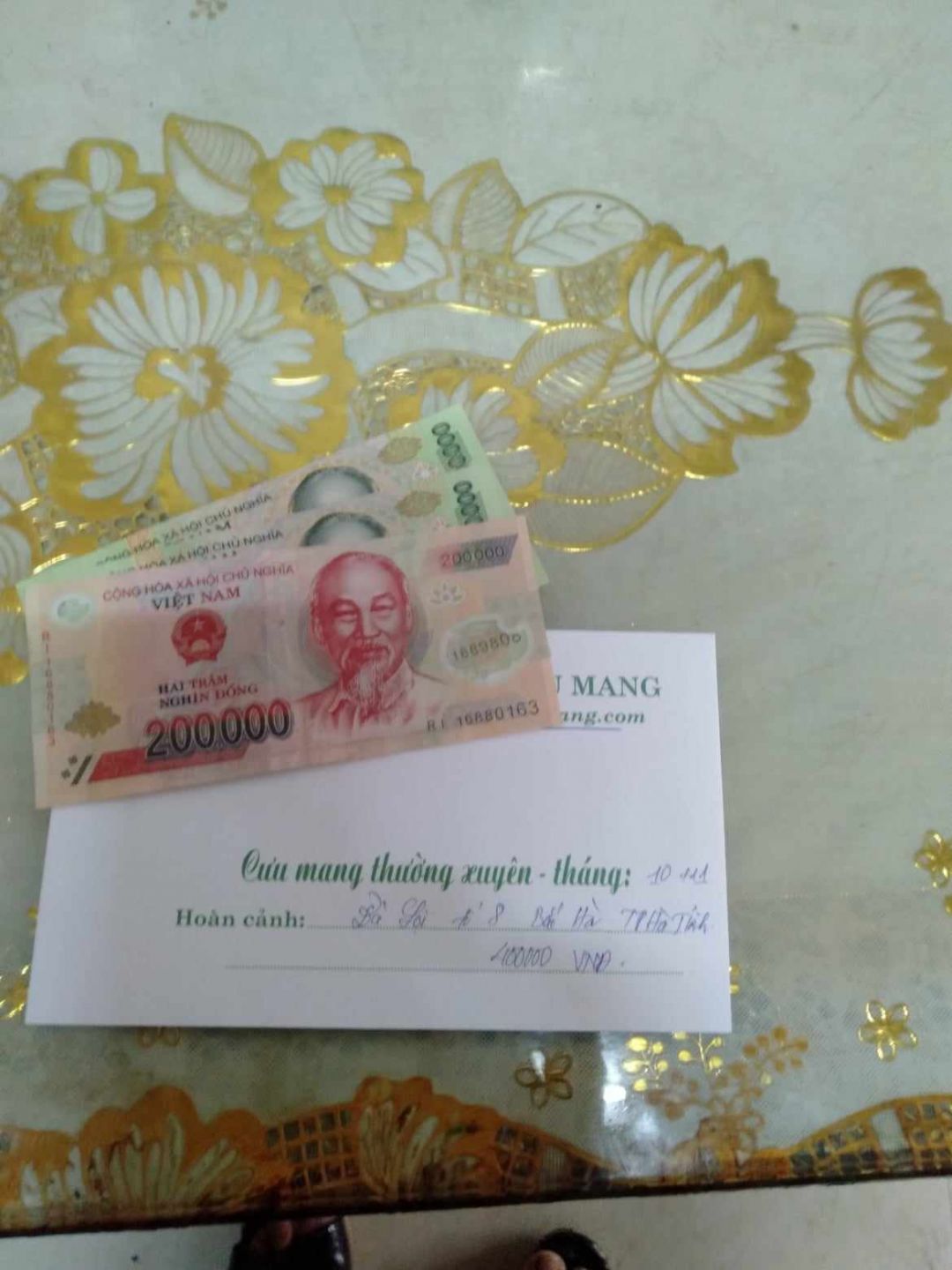 Hôm nay ngày 29 tháng 10. Thành viên Nhỏ Trang và thành viên Nguyễn Quý đã tới trao CMTX tháng 10+11 cho Hoàn cảnh Bà Lợi.