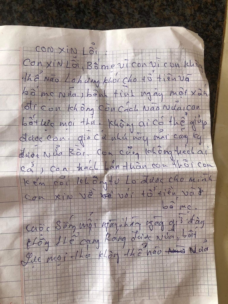 Ngày 18/06/2023 em đã để lại một bức thư tuyệt mệnh rôi đi ra câug Bến thủy( tĩnh nghệ an) nhảy xuống tự tử