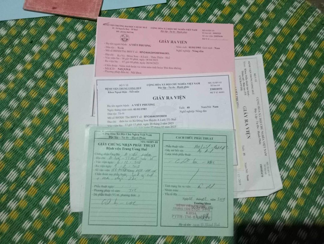 Anh bị tai nạn lao động năm từ 2008... nhưng đến 2010 vết thương lúc tai nạn đã biến chứng nặng khiến hai đôi chân của anh teo dần rồi vết thương đã bị hoại tử khiến anh không thể lao động được. Và từ lúc anh bị nặng như vậy người vợ đã không một chút xót thương đã bỏ rơi 3 bố con anh Phương lúc đứa con thứ hai mới được 1 tuổi. Anh có 2 đứa con 1 trai 1gái. Bé trai tên là A Viết Tuấn 17 tuổi đi làm ở Sài Gòn, mới đi làm được 2 tháng, thu nhập không ổn định. Lương không đều và chưa được trả. A Viết Thị Ngọc Tuyền, 13 tuổi, học lớp 7 trường THCS - THPT Trường Sơn, tuy em học yếu nhưng em rất chuyên cần. Anh được trợ cấp với số tiền 720.000₫. Không đi khám định kỳ do không đủ điều kiện, nếu đi khám thì phải thuê mất 2-3 triệu tiền xe vì cơ thể bị liệt , khó vận chuyển nếu đi phải thuê xe, ngoài phí bảo hiểm chi trả 1 triệu đồng. Anh Phương bị bệnh bệnh: viêm bàng quang, viêm đường ruột, viêm đường tiết niệu rất nặng, viêm đại tràng. Từ năm 2010  đến nay bệnh bệnh ngày càng nặng thêm vết thương thì thương xuyên lở loét... Thật sự cuộc sống gia cảnh anh Phương rất là khó khăn : Đứa con gái đang chăm sóc cha. lắm lúc cha đau nặng phải về Huế chữa trị khiến bé suýt bị lỡ thi học kỳ...và lắm lúc bé phải đi bộ tới trường vì không có xe, một chiếc xe đạp cũ đã hư hỏng giờ vẫn chưa có đk sửa. 3 cha con đang có một căn nhà được hội PN huyện kêu gọi xây dựng.Nhưng hiện tại căn nhà vẫn hay bị mưa gió tạt vào khiến anh không thể ngủ được trong phòng mà phải chuyển ra bên ngoài sàn ẩm thấp để nằm. Cha con anh Phương rất cần có sự yêu thương quan tâm từ quý mạnh thường quân một chút tấm lòng hỗ trợ cho gia cảnh của anh: một vài tấm tôn để lấp kín chỗ bị tạt và để anh thuê người làm ạ.
