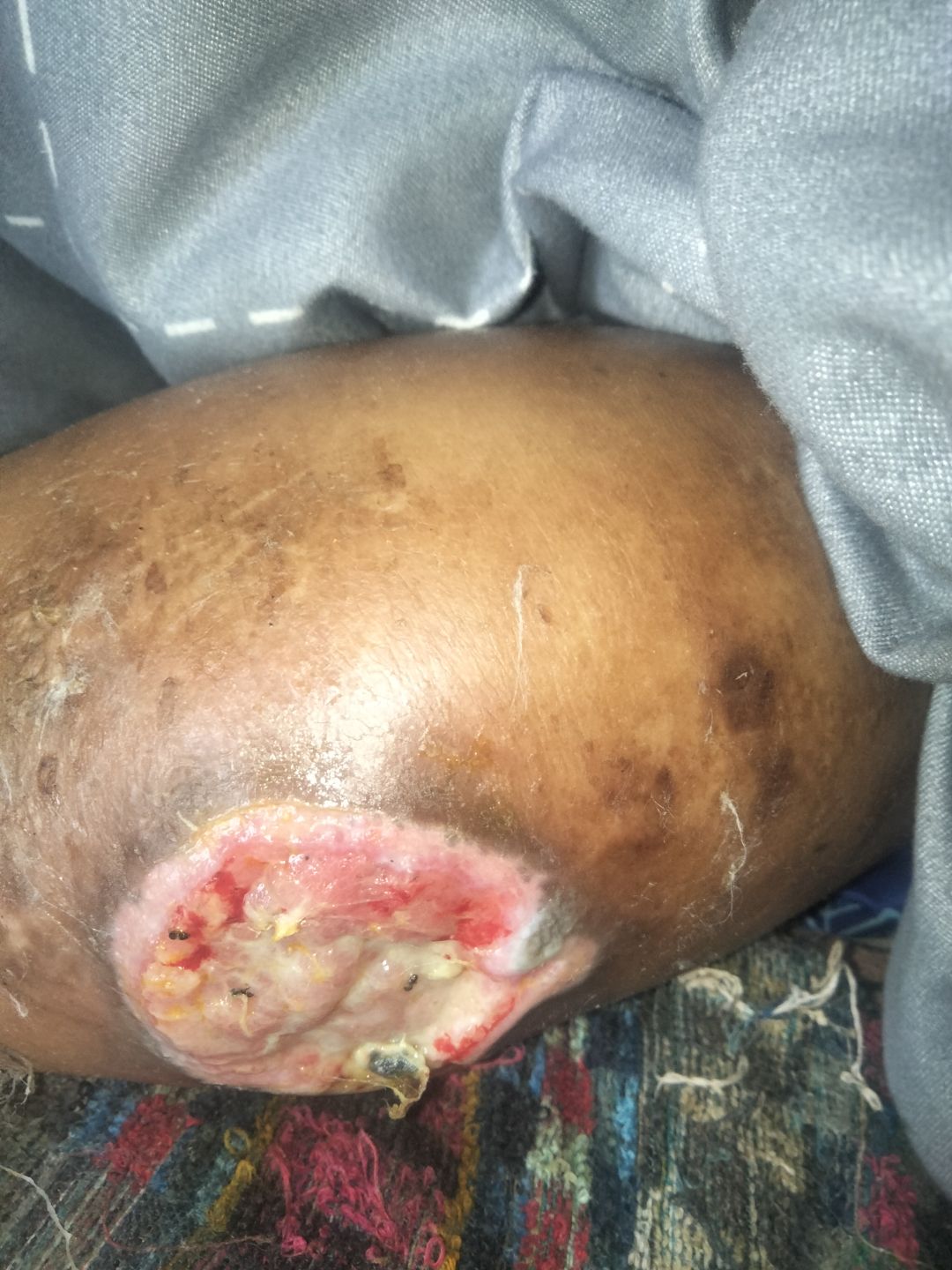 Đây là hình ảnh của em A Viết Phương hiện tại đang bị hoại tử ngay đầu gối và ban chân ạ