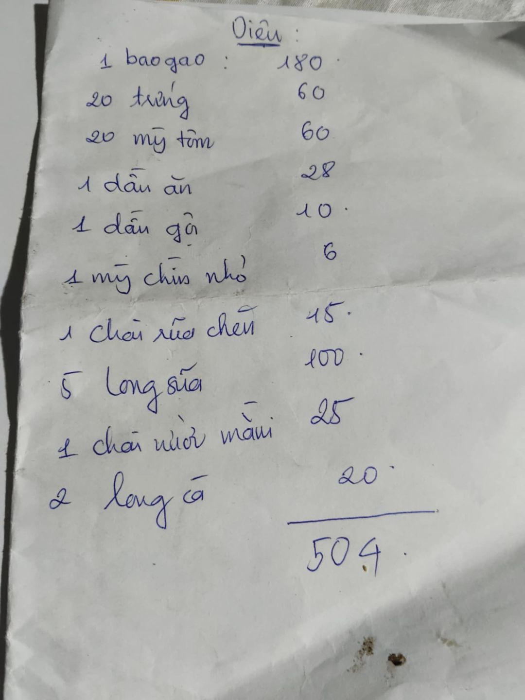 và 500.000 đ nhu yếu phẩm còn lại