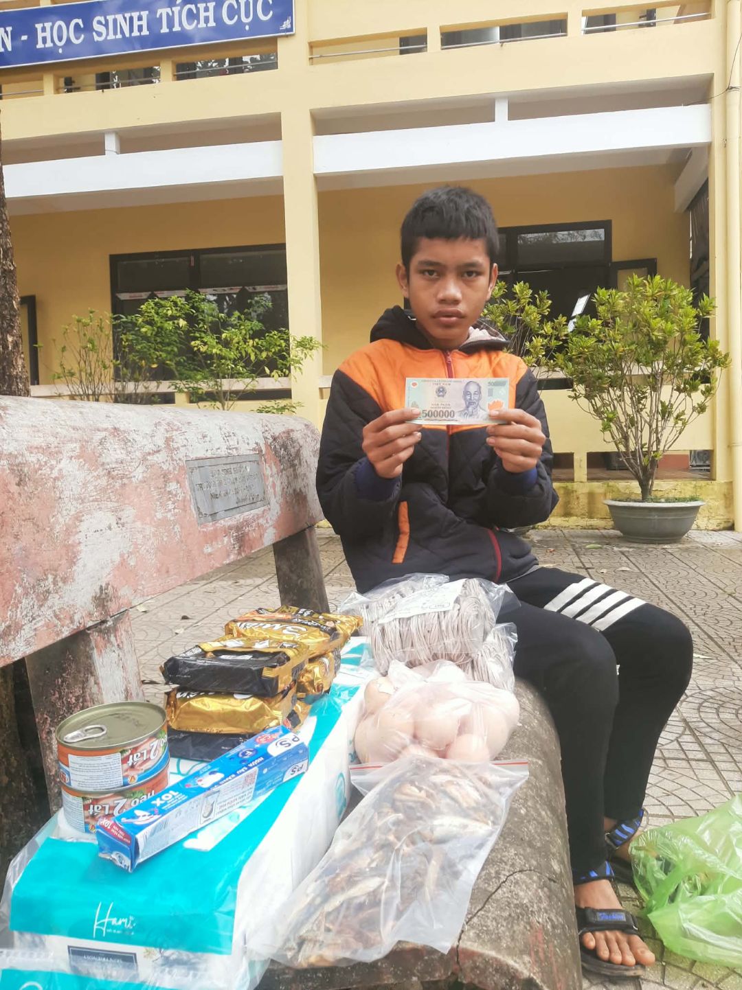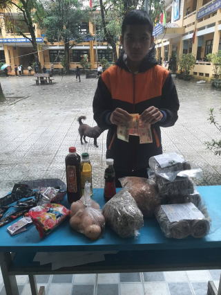 Em đã trao CMTX T7:200. 000 gaoj, 140.000 trứng ,160.000 đ mì khô