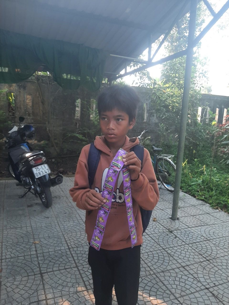Em đã trao CMTX T1 1 triệu đồng gồm quà Tết 400.000 đ ( 1 thùng mì tôm :120.000 đ , hạt bí: 110. 000 đ, mít sấy 120.000 đ , mứt gừng 50.000đ và 600. 000 đ tiền mặt