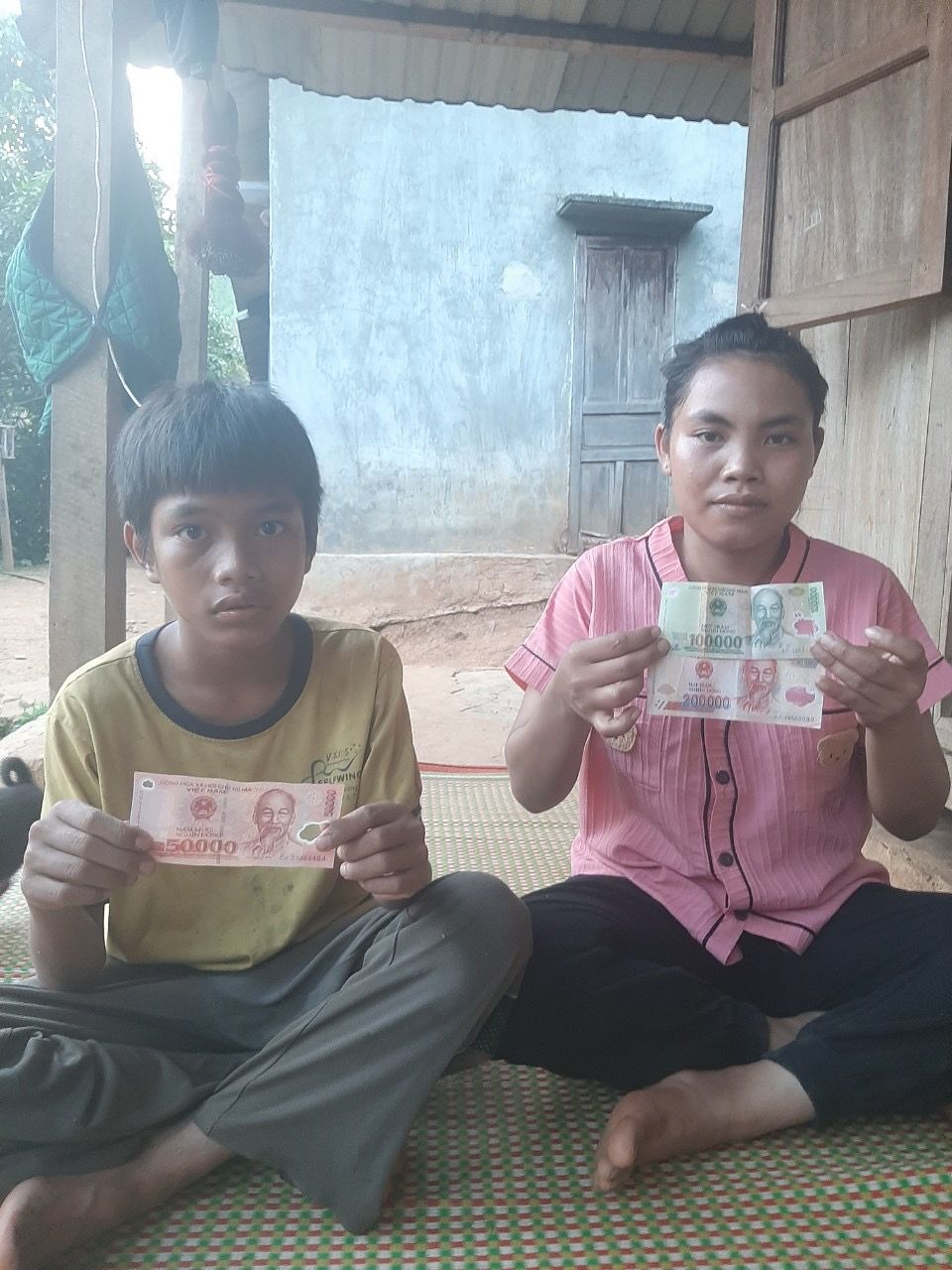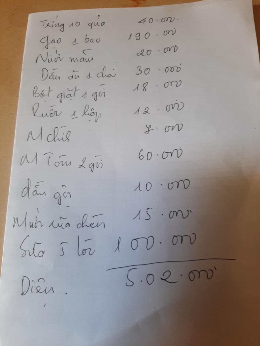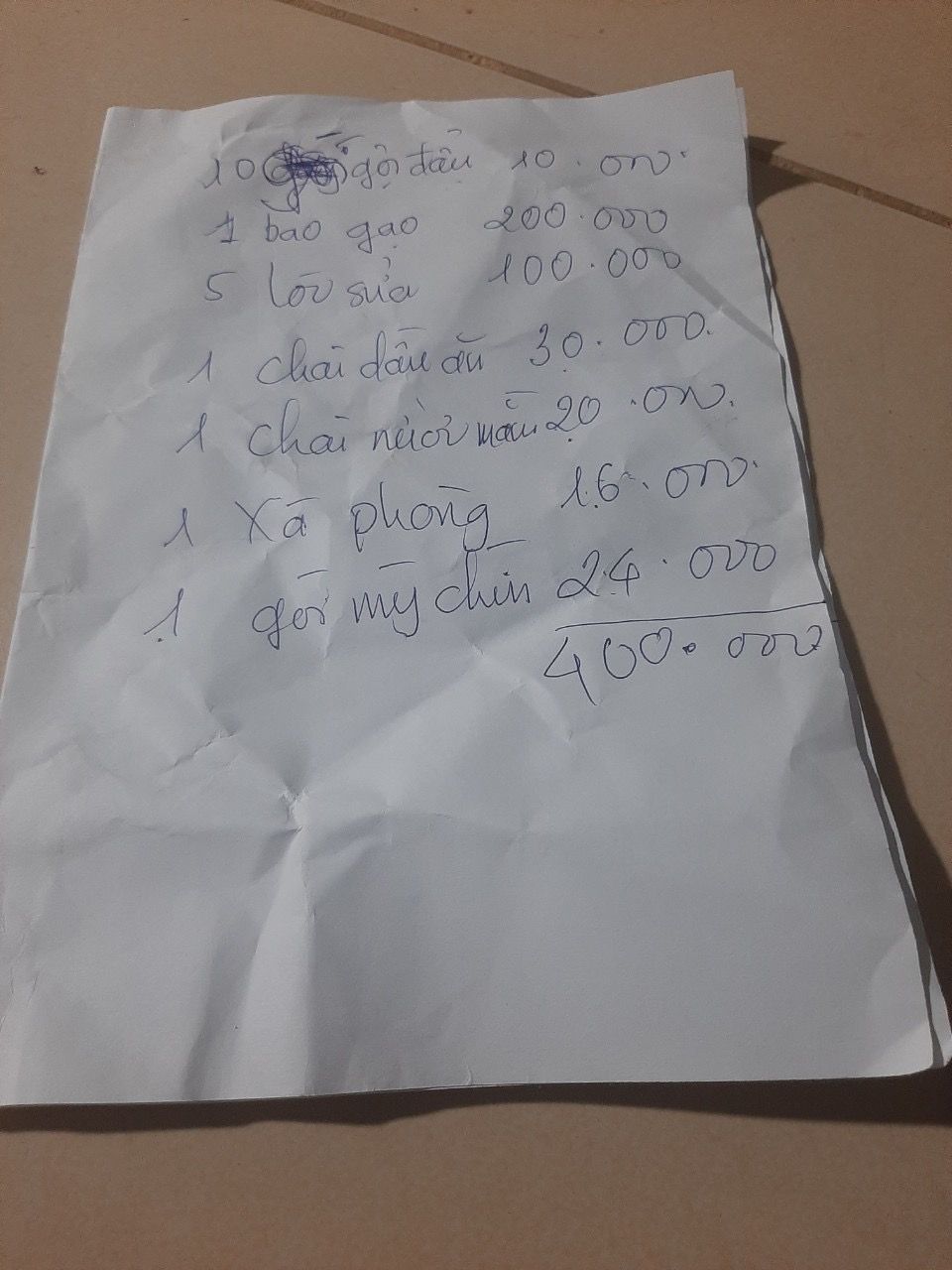 Em đã trao CMTX T7 500.000 đ và 500.000 đ nhu yếu phẩm.