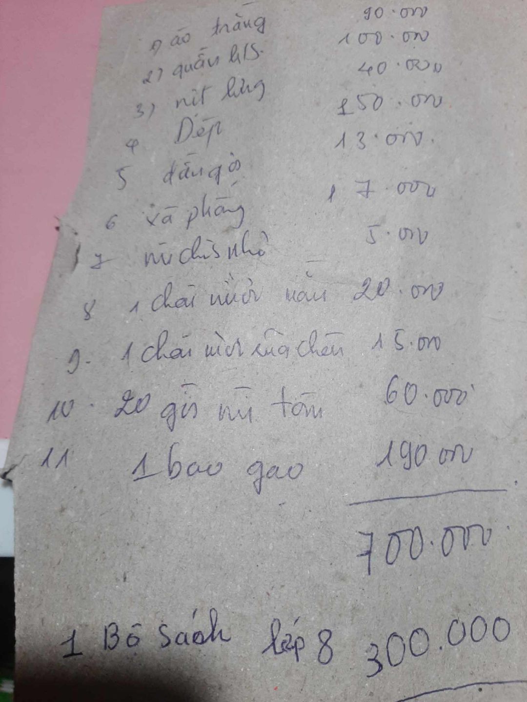 Em đã trao CMTX T9 1 triệu đồng nhờ gvcn mua nhu yếu phẩm và các vật dụng cần thiết đầu năm học.