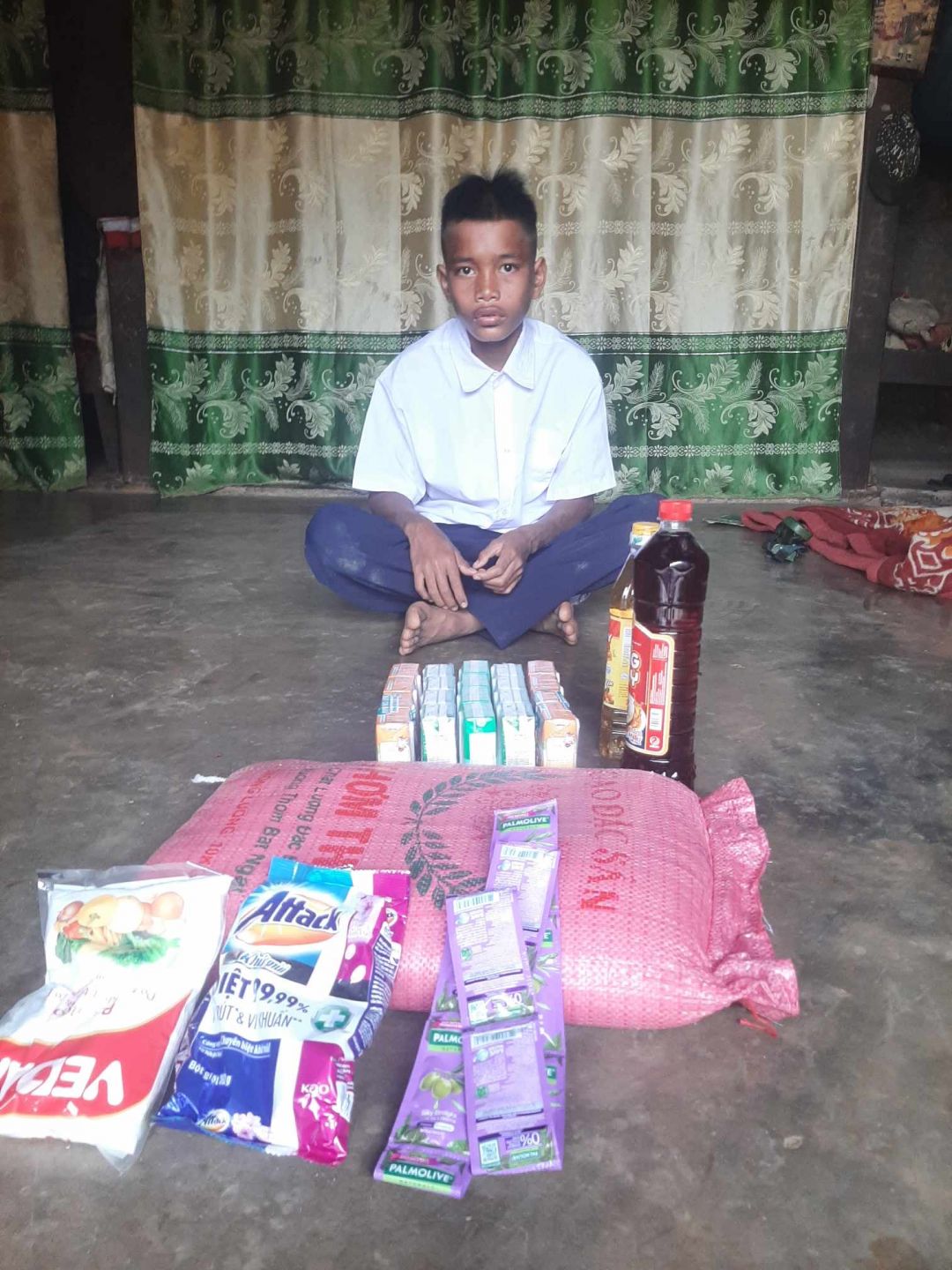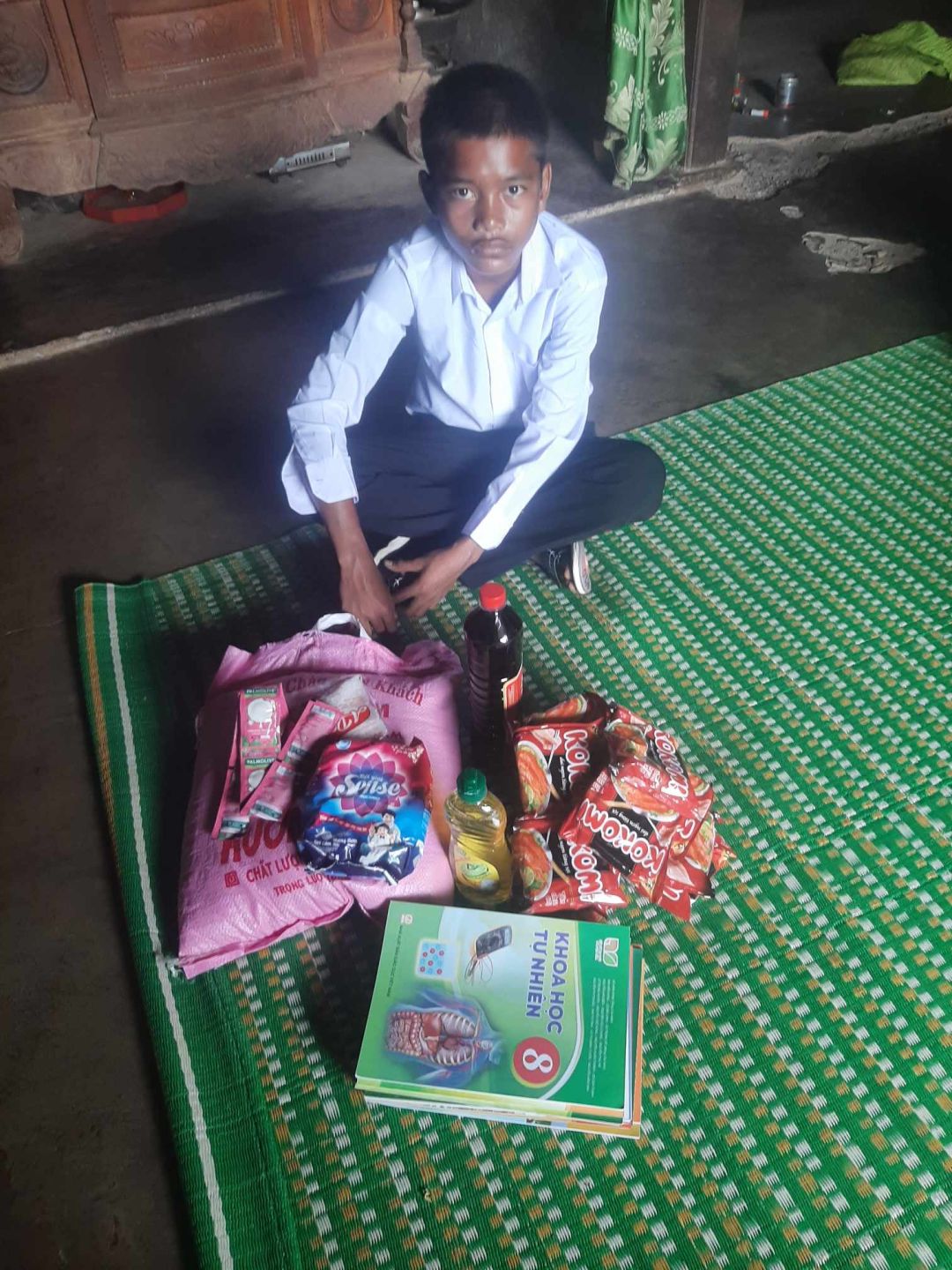 Em đã trao CMTX T1 1 triệu đồng gồm quà Tết 400.000 đ ( 1 thùng mì tôm :120.000 đ , hạt bí: 110. 000 đ, mít sấy 120.000 đ , mứt gừng 50.000đ và 600. 000 đ tiền mặt