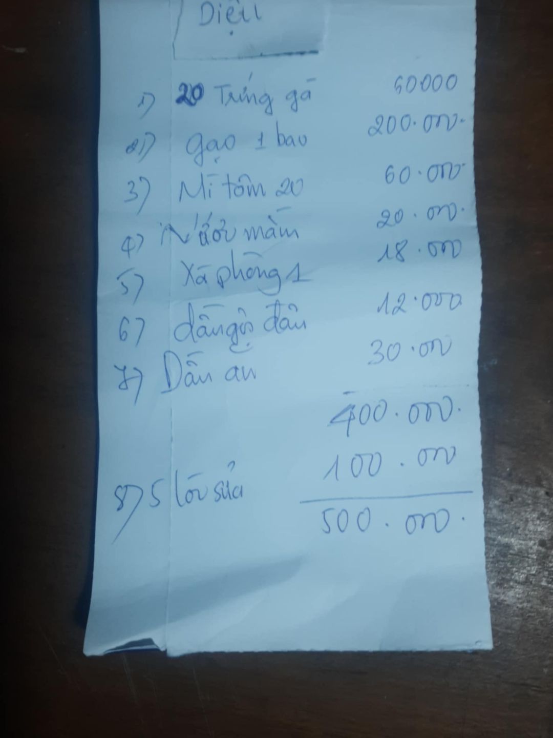 Em đã trao CMTX T7 500.000 đ và 500.000 đ nhu yếu phẩm.