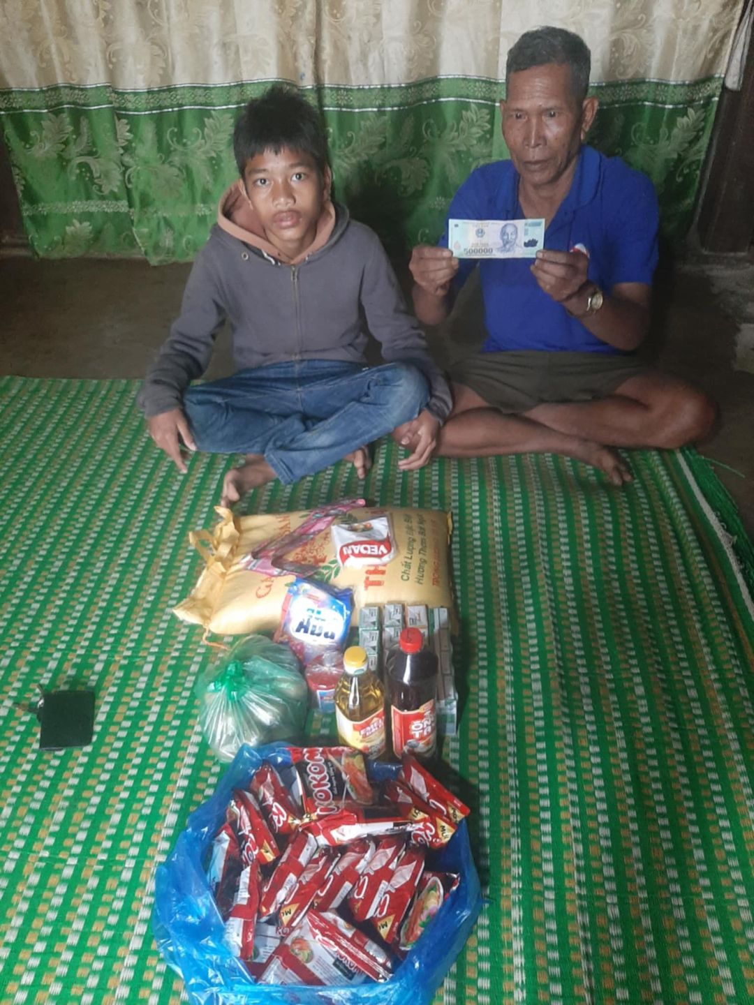 Em đã trao CMTX T7:200. 000 gaoj, 140.000 trứng ,160.000 đ mì khô
