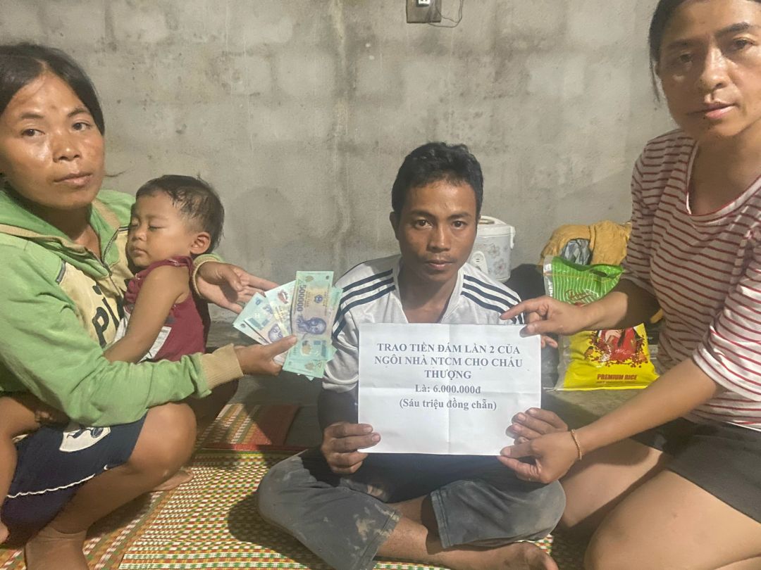 Đại diện nhóm NTCM khu vực A Lưới chị Linh Kha đã ghé thăm và trao số tiền 6 triệu còn lại cho gia đình cháu Thượng và nhờ em Wendy cập nhật thông tin.