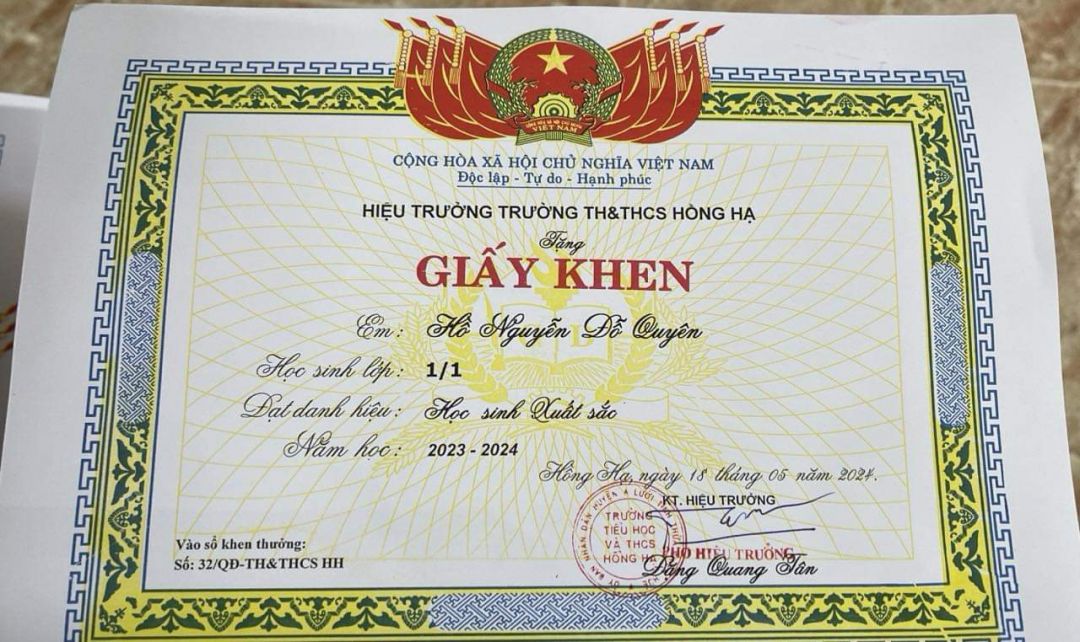 Một năm học nữa lại trôi qua thật nhanh và cháu Đỗ Quyên đã được thành tích đáng khích lệ ạ.