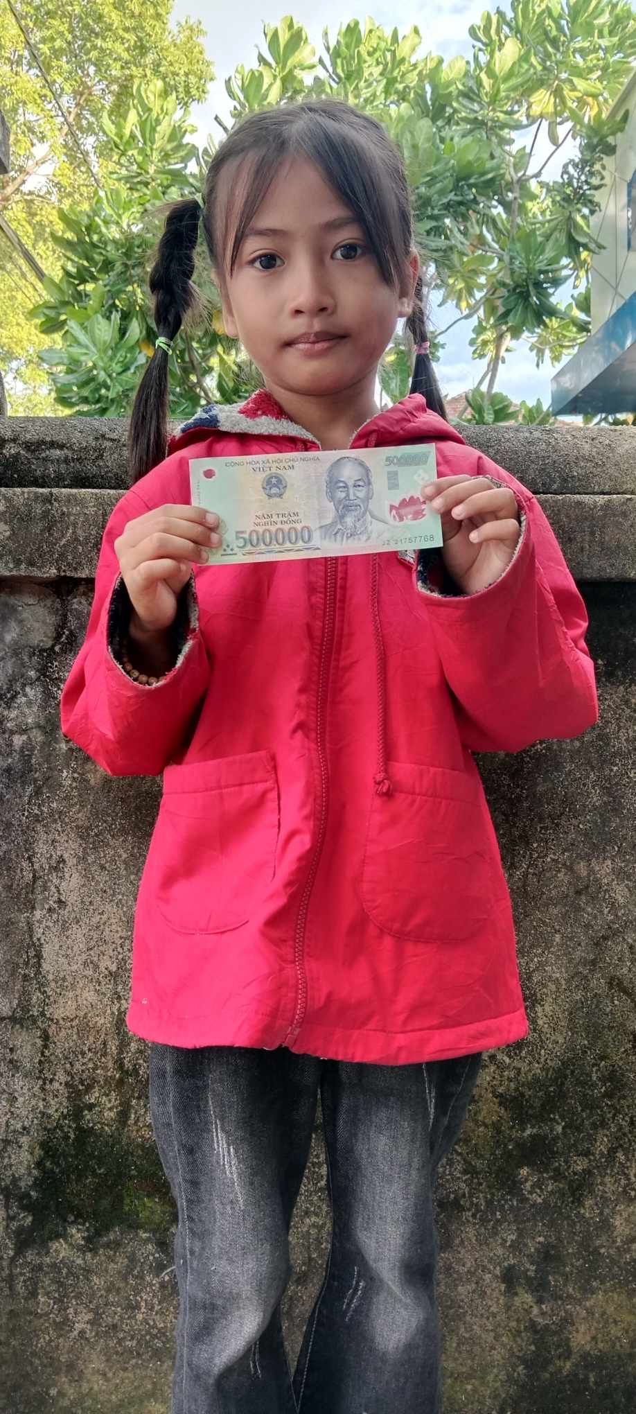 Em đã trao số tiền CMTX tháng t3. 500.000 đ cho gia đình em Hồ Thị Đăng.