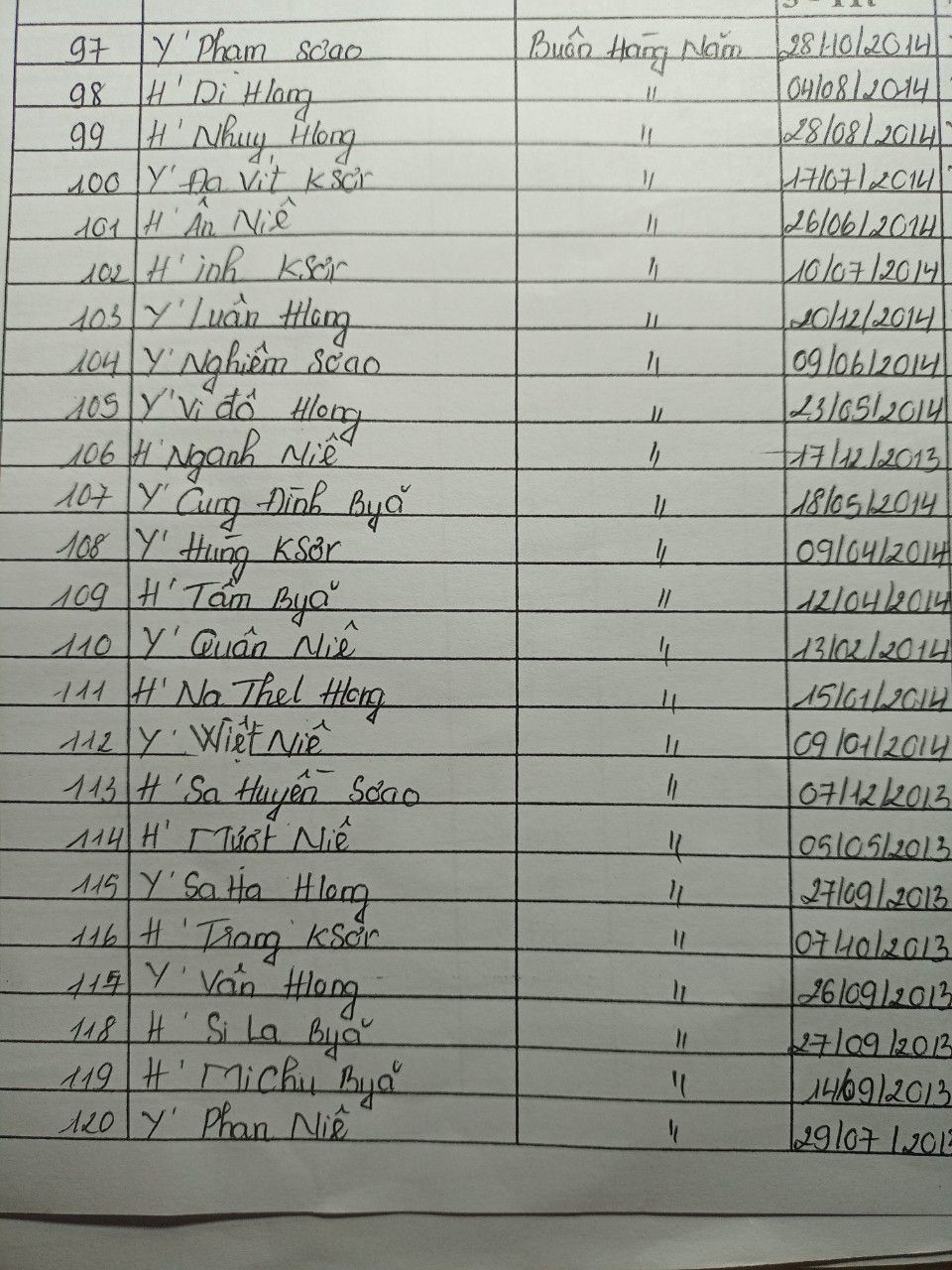 Danh sách hộ nghèo, cận nghèo buôn Hàng Năm: