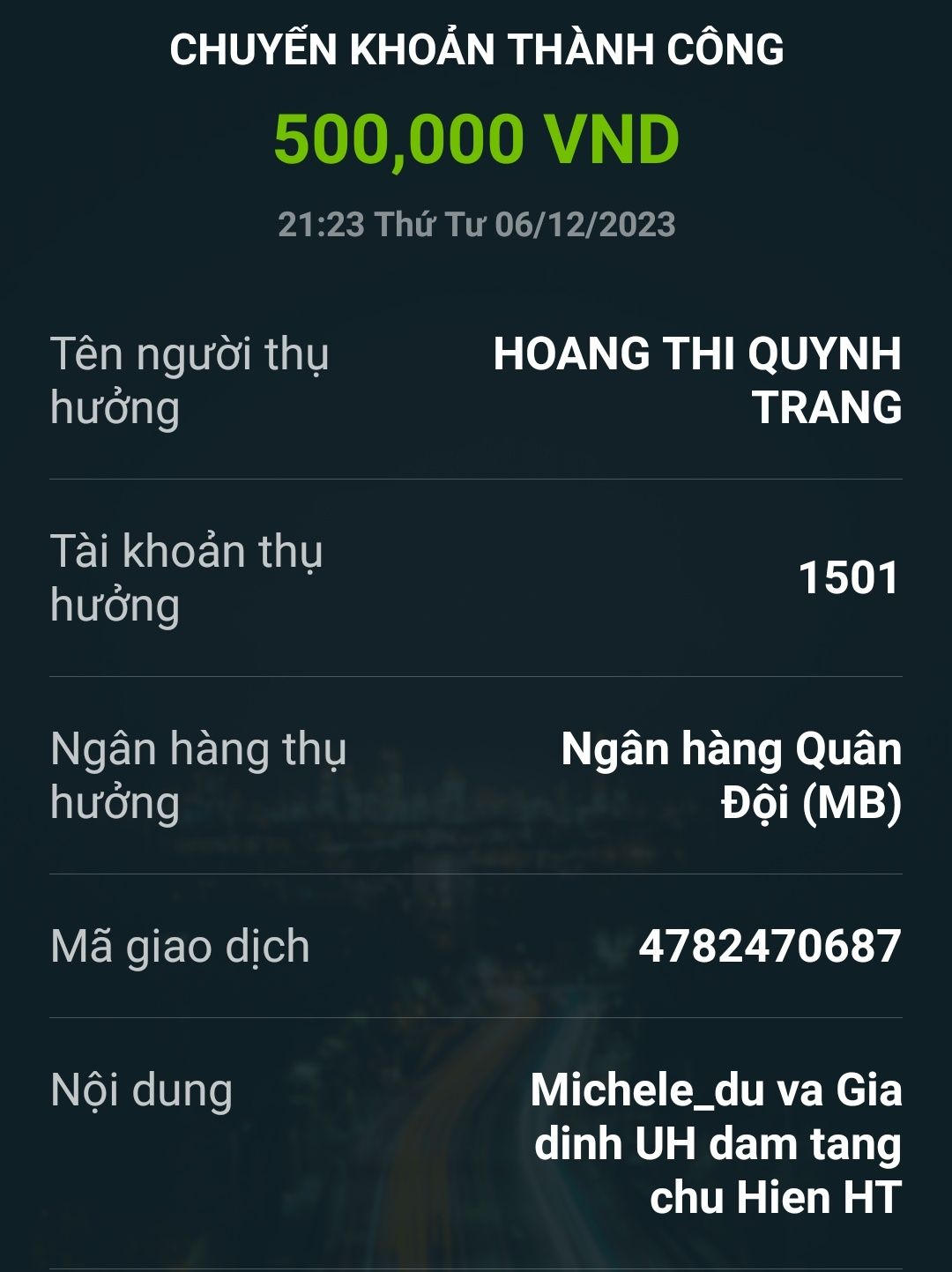 Michele_du và Gia đình ủng hộ đám tang của anh Hiền 500,000₫