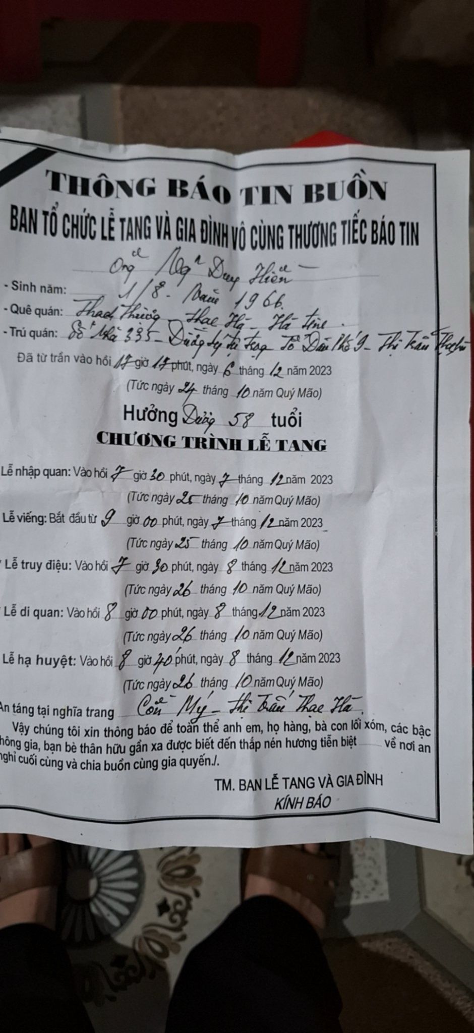 Hoàn cảnh gđ quá khó khăn nhưng cũng cố vay mượn để mong cứu đc chú qua cơn nguy kịch, nhưng sau một tuần cấp cứu chú đã kg qua khỏi, chú đã mất lúc khoảng 17h30 ngày 06/12/2023